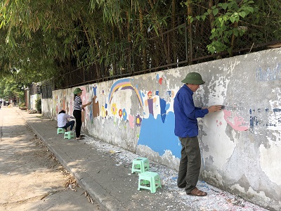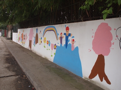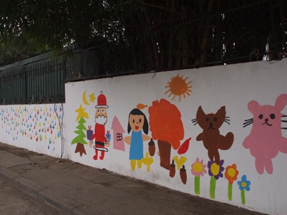 当時の年長さんが図案を考えてくれ、 さくらっこ全員で色塗りをして、想いを込めた壁画です。 3年間の間に、雨風に当たり、少しずつ劣化していきました。 長期休みごとに、職員で色を塗り替えたり 修正を加えてきましたが、ついにそれも出来ないくらいになってしまいました。 そこで、この春休み劣化した壁画を綺麗にそぎ落とし 壁の大掃除をすることにしました。 春休み中、警備さんや給食の先生達が手作業で 「今までありがとう」の気持ちを込めて壁をそぎ落とします。 そして、真っ白なペンキで塗っていきました。 この壁面の真っ白なキャンバスにどんな絵を描いていきましょうか? 今までの絵を消してしまうのは、なんだかとても寂しい気持ちがしましたが 今いるさくらっこで新たな壁画製作、楽しんでいこうと思います。 今までの壁画に感謝を込めて~。 ベトナム・ハノイの日系幼稚園 さくらHoaAnhDao幼稚園ホームページ (たこ) |