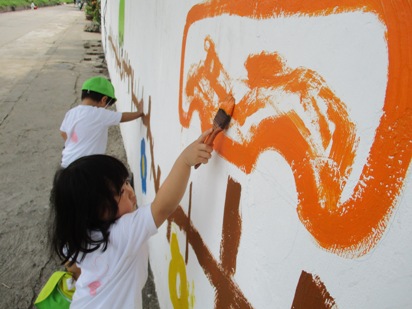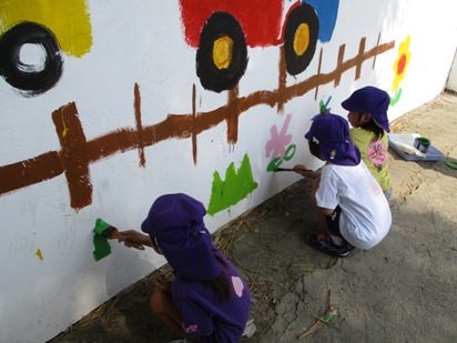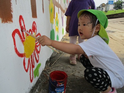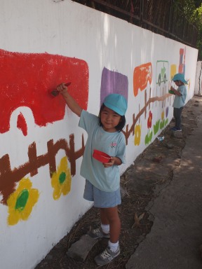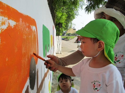 ダイナミックに塗っているすずらん組さん(年中) 背伸びをして、高いところも塗ろうとしていますね~ がんばって届くかな?! こんなに綺麗に塗れました!! 張り切り全開のなのはな組さん(年少) お兄ちゃん、お姉ちゃん達が取り組んでいたのを見ていて、 ずっと一緒にやりたかったそうです!! ペンキが服につかないように、気をつけて、みんなでたのしく取り組めました◎ やる気十分のなのはなスマイル^^ お兄ちゃん達が描いてくれたところを、 少しずつ色を着けていきました! 絵の具とはまた違うので、ちょっと難しかったかな?! いちご組、もも組さん(最年少) さくら組さんの描いたお花を、一生懸命に塗ってくれています! 大きなお友達から、小さなお友達が、一緒になって作り上げています◎ 先生と一緒に、上手にできました◎ 「ひとりでできるもん!!」 と言う、気持ちがすごく伝わってきますね^^ ん~!!と、手を伸ばして、塗っていく姿、本当にかわいいですね! さくらっこ達が作り上げてきた壁面も、そろそろ完成に近づいて。。。 いえいえ!! 今から、もっと、素敵な壁面に仕上がっていきます^^ さぁー どうなっていくのか!!楽しみにしていてください!! (#082)ベトナム・ハノイの日系幼稚園 さくらHoaAnhDao幼稚園ホームページ