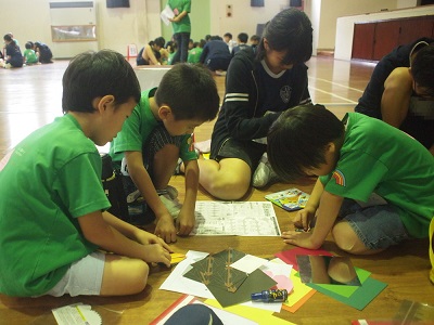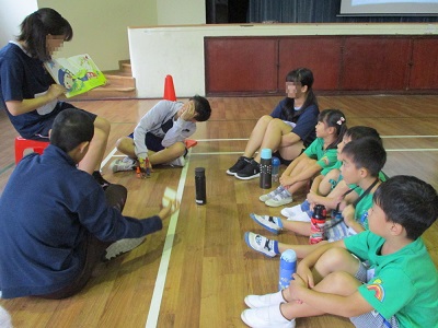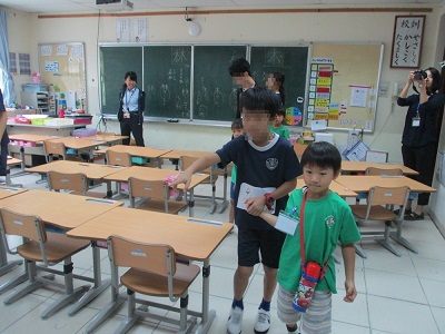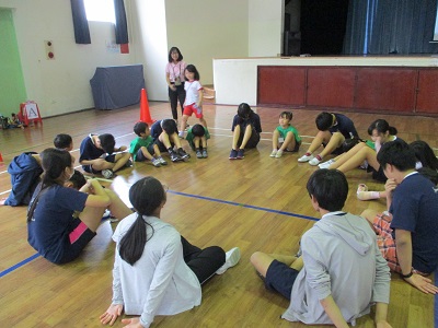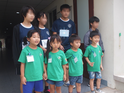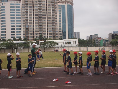 幼稚園バスに乗って、ハノイ日本人学校にお出かけです ![]() この日は、中学生たちとの交流会です。 バスの中で、すでに気分が高まり大騒ぎのさくらっこ。 少し、気持ちを落ち着けるように話して、いざ!出陣☆ ところが・・・あれあれあれ??? 初めての学校の雰囲気に飲み込まれたのか? 想像以上に大きなお兄さんお姉さんに緊張したのか? それとも、ちゃんと空気を読んだのか? とーーーーっても静かなさくらっこ達。 まるで借りてきた猫!? ![]() そんな状態の中交流会がスタート♪ まずは、絵本の読み聞かせをしてもらいます。 こうやって、少しずつ交流をする中で笑顔が見られリラックスしてきましたよ。 次は、折り紙。 色々な種類の折り紙で、思い思いの物を作り上げていきます。 おやおや?こちらは・・・まだ打ち解けられないのかな??? 幼稚園のお友達3人で折り紙中(笑) こちらは、2人で仲良く手裏剣折っていますよ。 次は、学校探検に連れて行ってもらいました。 ここは・・・1年生の教室。 ドキドキ、ワクワクの瞬間です。 椅子に座らせてもらったり、教科書見せてもらったりして 1年生への期待を膨らませているようでした。 校内探検を進めると・・・・ グラウンド(校庭)を発見!! みんなの目線の先には・・・2年生のお友達。 丁度体育の時間でしたが、卒園児のお友達がいて 「あー!!幼稚園の子だぁー!!」「せんせー!!」 と、手を振ってくれました。 こういう卒園児との出会いが私たちの幸せです。 ちなみに、今年の中学3年生にも卒園児が2名いました。 もう私よりすっかり背も高くて。 でも、昔のまま素直でかわいかったー ![]() 学校では、赤白帽子をかぶるんだね。 こんな光景もしっかりと目に焼付けていました。 さてさて、探検後はまたまた体育館に戻りお楽しみのダンス☆ 「USA」を踊ります。 難しい振り付けも、お兄さんお姉さんに教えてもらってノリノリ 嬉しそうに踊っています。 つづいては、ゲーム。 缶積み競争。 細い缶はポイントが高いんだよ。 どーやろう???真剣です。 これは、フラフープ渡り。 「がんばれ、がんばれ!!」 声援が飛び交います。 最後は、色々な幼稚園のお友達もまざってのハンカチ落とし。 ついつい、ハンカチを落とすのは同じ幼稚園のお友達。 でも、せっかくだから色々なお友達と関わろう! 楽しい時間はあっという間に過ぎます・・・。 もうお別れの時。 お土産に、牛乳パックで作るおもちゃをプレゼントしてもらい 各園、代表のお友達がお礼の言葉を述べて終了です。 中学生が花道を作ってくれてお見送りしてくれました。 「あー、楽しかったなぁ」「また行きたいなー」 さくらっこ達は、小学校への期待と楽しかった思い出 中学生たちからのたくさんの優しさをもらい、 笑顔も心もホックホクで帰りました。 企画から運営、中学生の皆様・ハノイ日本人学校の諸先生方 今年もありがとうございました。 (たこ) ベトナム・ハノイの日系幼稚園 さくらHoaAnhDao幼稚園ホーページ |