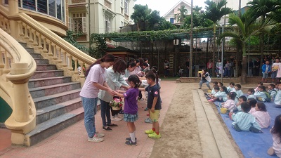 ベトナムでは、自分の子供がお世話になっている 先生に、感謝をする日だと言われています。 毎年、当園でも保護者の方々がこの日には 「先生の日」という事で、会を開いてくださいます。 日本人にとっては馴染みのないこの行事。 毎年、本当に恐縮します・・・。 私たちに「ありがとう」ではなく、 私たちが「ありがとう」です。 毎日、さくらっこ達からたくさんの幸せをもらいながら 仕事が出来る喜びと、ハノイの地で愛らしいさくらっこや 保護者の方々に出会えた事に感謝です。 今日の「先生の日」私たちは、自分を振り返る日とし 今までの保育を見つめ直し、よりよい教育が提供できるよう また精進していきたいと思います。 会を企画下さった、父母会の役員の皆様、 贈り物を渡してくれた年長さくら組さん、 それを見守ってくれたいちご、もも、なのはな、すずらん組さん、 わざわざ幼稚園まで足を運んでくださった保護者の皆様。 本当にありがとうございました。 こんなにもかわいらしいお花の籠に 手作りメッセージ付きのクッキーまで。 感動です。 そして、こんな素敵なお花も届きました。 スイミングスクールのルネサンスさん。 保護者の方からも。 皆様、本当にありがとうございました。 そして、今後ともよろしくお願い致します。 (たこ) ベトナム・ハノイの日系幼稚園 さくらHoaAnhDao幼稚園ホーページ |
