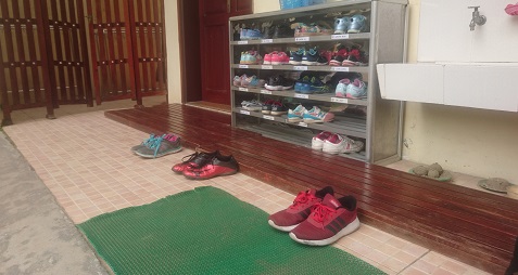 その内容は、また後日詳しくアップしますが 今回は、その番外編。 まずは、この写真をご覧ください。 (園児の名前が写っているので加工しました。その為に光が入っています) 写真を見て、何を感じましたか? 私は、履き物がちゃんとそろえて 置かれていることに、感動しました。 この、靴を揃える習慣というのは 日本人ならではの美しい礼儀作法の一つだと思います。 その昔、園便りでもこの事について取り上げたことがありましたが 再び、思い出したのでこの詩を載せます。 『はきものをそろえる』 幼稚園でも、さくらっこ達には靴を揃えるように伝えています。 きっと多くの家庭でも、脱いだ靴は踵を揃えて並べる事が習慣になるよう 常々伝えていることと思います。 ですが、それを言われなくても当然のようにできるように なるまでには、時間がかかります。 それが、日本人学校の中学3年生はみんながしっかりとできていることに 感心したわけです。 開園して13年目。 ベトナム人スタッフにも、同じように「はきものをそろえる」事を 伝えていますが、なかなか習慣付きません。 忙しい日常の中では、時に仕方がないと目をつむっていますが 長期休み中の残務処理期間には、揃えてほしいとお願いしています。 小さな事かもしれませんが、ここに日本人の心がある気がして 揃えられた靴をみて、日本人としての誇りを感じました。 はきものをそろえて、心も穏やかにそろえていきたいものです。 日本人学校中学3年生の、校外学習本編もお楽しみに・・・ (たこ) ベトナム・ハノイの日系幼稚園 さくらHoaAnhDao幼稚園ホーページ |