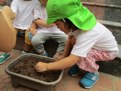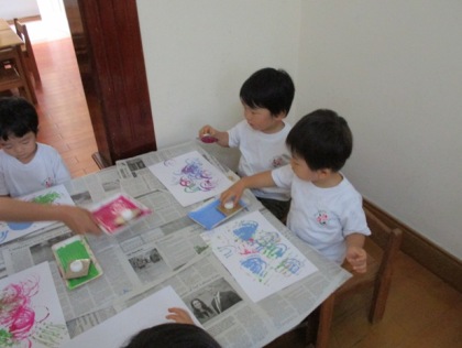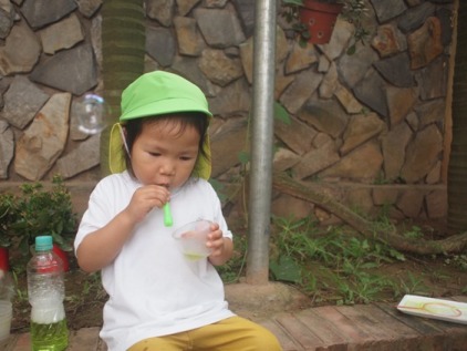 一歳児クラス いちご組、2歳児クラス もも組が、 新しいお友達を迎えて、新年度をスタートしました。 ちょっと、クラスの子どもたちの様子を のぞいてみましょう! ![]() みんなで、砂場あそび。 子どもたちは、スコップを片手にせっせと土いじり。 みんな夢中ですね。 ![]() くるまをうんてん!ぶんぶぶーん!!しゃぼん玉あそびの一コマです。 ふーっと吹いた先に、かわいいしゃぼん玉がふくらんで、 思わず笑顔がこぼれます。 こいのぼり製作をしました。 絵の具を付けて、スタンプをぺったん! 色を重ねて、何度も何度も押していくと すてきな色とりどりの鱗のように見えてきますね。 ![]() おへやの中で、お外を見ながらごきげんのひと時 ![]() お給食やおやつの時間は子供たちの大好きな時間です。 みんなで一緒だと、美味しいね。うれしいね。 お弁当の日 ![]() 園庭でシートを敷いて、みんなでいっただっきまーす! ふうせんかづらの種を植えました。 ![]() 人差し指で穴を開けて、種をぽっとん。 小さな種を、大切にもって。 芽が出てくるのが楽しみです。 子ども達も、ふうせんかづらと一緒に これから、ぐんぐん大きくなりますように。 ![]() ベトナム・ハノイの日系幼稚園 さくらHoaAnhDao幼稚園ホームページ (まんごーさん) |