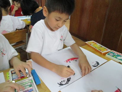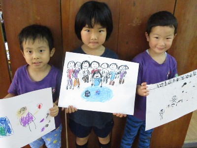 一人ひとりやる気十分な様子がすごく伝わってきています。 生活にも慣れてきたので、 みんなで、さくら組になるとどんな活動があるのか、去年の写真を見ながら、 『がんばりたいこと』『たのしみなこと』をクレヨンで絵を描きました。 お兄ちゃん達の写真を見ながら、 「これ!!前のさくら組さんがやってたよねー」 「みんなもできるの?!」 「はやくやってみたーい!!」 と言って、写真を見ているだけでも楽しみがいっぱいの様子でした◎ 自分で考えて思い思いに描く事は、 子どもたちにとって、なかなか難しいこともあるのですが、 イメージがしっかり湧いたようで、真剣にクレヨンで描き始めました! 子ども達の描く絵を見て、楽しみにしている気持ちが現れていました。 これからたくさんの経験をして、大きくなっていくのが たのしみですね! やる気いっぱいに、出来上がった作品です! 大きくダイナミックに描く事が出来ました。 同じ目標を描いても、一人ひとりの個性溢れた作品で、 子どもたちからも話が止まりませんでした!! 4月初めての作品が出来上がり、 これから、たくさんの作品を作っていきます。 今年も、どんな作品たちがうまれるのかたのしみですね^^ (#082) ベトナム・ハノイの日系幼稚園 さくらHoaAnhDao幼稚園ホームページ |