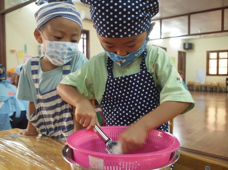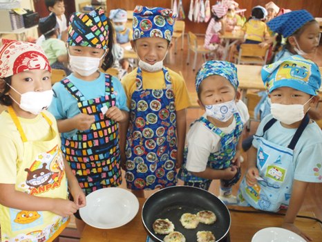 二学期が始まって、初めてのクッキングをさくら組さん(年長組)がやりました。