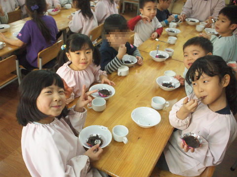 すずらん組(年中)&さくら組(年長)一緒に、 『ガトーショコラ』を作りました。 クッキングは、月に一回ですので とってもたのしみで、みんなでエプロンを着替えてしっかり話を聞いています。 それでは、、レッツ!!クッキングー!!! ①板チョコを刻みます。 ちょっと硬かったので、先生にお手伝いしてもらったお友達もいましたが、 さくら組さんは、「よいっしょ!!」と言って、 力いっぱい刻んでいきました!! お友だちも「おー!すごい」と言って、応援していました^^ こんなに小さくできました!! ②湯銭で溶かし、無塩バター→溶きたまご→砂糖を入れて混ぜていきます。 絶対に水を入れないように、気をつけて丁寧にすること! と、伝えていましたので、、、 どのグループも丁寧にゆっくりと活動することができました。 「ボールがぐらぐらするー」 「ここ持ったらいいんじゃない?」 と言って、お友達で、考えて作る姿もみられました。 「あぁー!!なんかいい匂いがしてきた!!!」 そー言って、 くんくんと鼻を近づけて、においチェックしてました◎ たまごも、上手に割ることが出来ました! ちゃんと、ふたつの手でパカっと割る姿は、 ☆お料理名人☆のようでした^0^ 溶いたたまごをお友だちと協力しながら、ゆっくりと入れていきます。 砂糖を入れて、仕上げのかき混ぜです!! 「おいしくなーれ!おいしくなーれ!」 と、エールを送りながら、みんなで作り上げていきました。 さいごに、自分のカップに入れて完成です! 「わぁーどろどろしてるー」 と、入れるのも大変そうでしたが、しっかりこぼれないように入れていきました。 さぁー!!焼きあがるのを待っていたら… 「なんかいいにおいがするー!」と言って、給食室にお邪魔させてもらって、 出来上がって、膨らんでいくところを見にいきました。 「わぁーすっごーい!!」 「あぁーはやくたべたいよー」 と、喜びの声が広がっていました! おやつになると、いつも以上に準備が早く、、、 「はやくたべようよー」と、張り切っている子ども達>u< 「おいしーこれだったら、5個食べられる!!」 と言って、喜んで食べていました。 両手をほっぺたに当てて、 「おいしすぎるー!!」と、言っていたお友達もいましたよ◎ 自分たちで作ったものは、格別に美味しいようですね** クッキングだけではないですが、 子ども達が四苦八苦しながら、活動しているのを見ると、 ついつい大人が手を出したくなるのですが、 どうやってやっていくのか、 子ども達同士で考えたり、話し合ったりして、 自主的に行動していくのを見守るのも、大人の大事な役割だな。。 と、感じました。 これからも、 いろんな活動を通して、 『やってみたい』『できた』という、 素直な気持ちを、大切にしていきたいと思います。 (#082) ベトナム・ハノイの日系幼稚園 さくらHoaAnhDao幼稚園ホーページ |