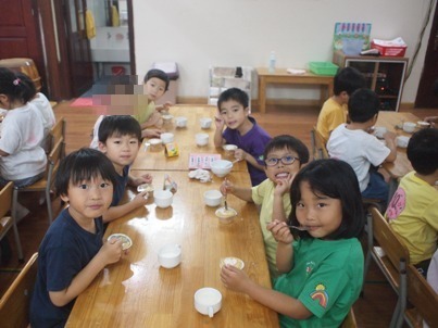 子どもたちはお部屋で読んでいた ’’こまったさんのマドレーヌ’’の絵本を読んで、 つくってみたいと言い、さくら組の子どもたちで決めました すずらん組さんも楽しみにしており、みんなで作っていきます!!! エプロン、三角巾、マスクをして準備OK! 今回は、、、 グループに分かれて自分たちで順番を決め、 テーブルまで必要な材料を持っていき確認します ボールにはホットケーキミックスにバター、さとう、 ベーキングパウダー、豆乳 隠し味のレモン、はちみつを入れてまぜまぜ なんだかあまーいにおいがする お友だちがまぜていると、他のお友だちが さっとボールをささえて手伝ってあげる姿もありました 生地が混ぜ終わるとおやつまでお楽しみ すずらん組さんはスヤスヤおひるねです 「いいにおいがしてきた~!」 自分の作ったカップをそれぞれさがして、、、 出来上がったマドレーヌに粉砂糖をかけてトッピングしていきます トッピングもできました!!! ということで、、、マドレーヌ完成!!! 「おやついただきます!!!」 「ほんとにふわふわだー!!! 「あまくっておいし~い 子どもたちも大きな口をあけていただきます 「おいしすぎる~!!! 作り方をメモしよーっとと言うお友だちもいました 3がつのクッキングはどんなものをつくるのかな~!?わくわく (ジャスミン) ベトナム・ハノイの日系幼稚園 さくらHoaAnhDao幼稚園ホーページ |