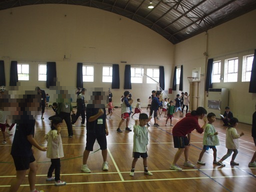 その時の記事 そして、今回は中学校へ招待していただき、 さくら組(年長組)が、わくわくいっぱいで遊びに行かせてもらいました。 はじめは、 緊張してちいさな声で挨拶になってしまったり、 ドキドキの表情だったのですが、 「だいじょうぶ?」「バスで来たの?」など、声をかけてくださって、 こどもたちも、少しずつ慣れていきました。 まずは、みんなでレッツダーーンス!! ボックスステップや、早い動きもあったのですが、 優しいお兄さん、お姉さんがいっしょに踊ってくれたりして、 すぐに覚えることができました。 「もう一回やりたかったー」と、お兄さんにお願いしている、さくら組のお友達もいました。 そして、たのしいゲームを3つ。 <新聞ゲーム>では、じゃんけんに負けたら、新聞が小さく折りたたんでいきます。 小さくなった新聞から落ちないように、抱っこしてもらい、 じゃんけんに負けてしまっても、うれしそうでした! <フープくぐりゲーム> グループで手をつないで、フープをくぐっていくゲームです。 これは、ちいさなさくら組の方が上手で、すいすいくぐっていったので、 お兄さん達は、「やっぱり上手だなー」と言われてにこにこの表情が見られました。 大きなお兄さん、お姉さんに「がんばれー」と応援していました。 <じゃんけん列車> 2人組で、列車になりじゃんけんをして、長い列車を作っていきました。 この日は、 ハノイにある他の日系幼稚園のお友達も遊びに来ていたので、 いろんなお友達ともじゃんけんをしたりして、 交流を持つことができました。 そしてなんと! じゃんけん列車の一等賞はさくら組のお友達でした! さくら組みんなで、よろこびました!! 最後に、お兄さん、お姉さんたちが、絵本をよんでくれました。 毎年、中学3年生は自作の「手作り絵本」を読んでくださるので、 子どもたちも、絵本の世界にどっぷりと入り込んでいました。 楽しい時間はあっという間で、お別れの時間になりました。 お兄さん、お姉さんたちから、 手作りの星のペンダントをもらって、お別れの挨拶。 そして、 子どもたちも、手作りのアイロンビーズと指編みのキーフォルダーを、 ひとり一人が、プレゼントしました。 「これつくったの?すごいねー!」と言って、もらえて、子どもたちも喜んでいました。 いろいろな、たのしい活動を考えてくれて、 いっしょに遊ぶことができて、とても楽しい時間を過ごすことができました。 また会えるかなーと言って、どこかでまた、会えるのを楽しみにしている子どもたちでした。 (#082) ベトナム・ハノイの日系幼稚園 さくらHoaAnhDao幼稚園ホーページ |