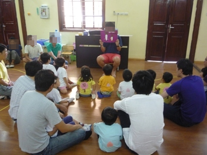 リズムや音楽が大好きなもも・いちご組の子ども達。 「父の日にはね、お父さんと一緒にリトミックをするよー」と、子ども達に伝えると、お父さんと幼稚園にくる!と楽しみにしていました。 そして、当日。 登園してきたものの、いつもと違う場所や、沢山のお父さんがいて、すこーし緊張気味だった子ども達。いつもやっている手遊びも、今日はなんだかぎこちない様子;; そんな中始まった父の日参観。 まずは出欠、お名前を呼びます。 いつもと違うーーとぐずっていた子も、お名前を呼ばれると… 「はーい!」 毎日の習慣の素晴らしさ!! このときばかりは、ぐずりつつもちゃーんとお返事をしてくれます。 そしてピアノが鳴り始め、いよいよリトミックの始まりです。 パパ、こっちにおいでー!と手を差し出す子、 だーい好きなリトミック!!にこにこしてジャンプ!ウサギになる子、 体を揺らして、機嫌よくリズムに乗る子… いつもの姿が少しずつでてきました!! 今日は父の日、せっかくお父さんと一緒なので、 いつもとは違うスペシャルバージョンでやってもらいましたーー! おひざにのってお舟をこいでもらったり… ♪じどうしゃぶっぶーとおんぶしてもらったり… みんなとっても楽しそう☆ すっかりいつもの笑顔に戻りました! あっという間にリトミックが終わり、 もも・いちご組の子ども達が好きな手遊び、”パン屋に5つのメロンパン”をしました。 メロンパン1つ、くださいな はい、どーぞ のやり取りが楽しくて、一生懸命話そうとする姿がかわいいのです。 本日最後のイベント、お父さんへのプレゼント渡し。 「おとうさん、ありがとう!」 プレゼントは、絵の具で指スタンプして作った、おそろいのネクタイです。 女の子にはリボン♪ みんなとっても似合っていますよ! お父様方、お忙しい貴重な日曜日に、来ていただいてありがとうございました。 お父さんと一緒の特別な一日として心に残ってくれたらと思います。 (レゴ) (なのはな組) 子ども達が楽しみにしていた、父親参観日! いつもとは違う様子でしたが、元気に朝の歌を歌ったり、 お返事する子ども達の姿が見られ、はりきっている様子でした。 父親参観恒例の、紙芝居も順番で読んで頂き、ありがとうございました。 子ども達も、良く聞いていました! なのはな組は、『アイスクリームキャッチ』を一緒に作りました。 ハサミの活動は、お父様ははじめて見られる方もおられて、 「小さい子どもには、ハサミも使うのも難しいんですね」と、 言ってらっしゃるかたもおられました。 おうちとは違う姿に、 「真剣な姿家では見せません」とも、おっしゃっていました。 完成して、いっしょに遊ぶ子ども達の姿は、とても嬉しそうでした!! 最後に、『うちの子どこの子』というゲームで、プレゼント渡しをしました。 布の向こうに子ども達が並び、足だけ見てわが子を探すゲームです。 お父様も苦笑いのゲームでしたが、上靴をヒントに我が子を見つけていました。 そして、無事に子ども達からもプレゼント! 子ども達もやっと、お父様にプレゼント《デカルコマニーのハンガー》を、 渡すことが出来て嬉しそうでした。 あっという間のたのしい時間でしたが、 子ども達もすごい素敵な笑顔を見せてくれました。 お忙しい中、参加してくださり、本当にありがとうございました。 (082) (年中 すずらん組) すずらん組は、お父さんと一緒にゲーム大会をしました。 まずは、朝のお名前呼び。お父さんのお膝の中で、「はい!」と 元気にお返事をします。 いつもと違う、特別な日の始まりに子供たちはとても嬉しそうです。 さあ、みんなでダンスを踊り、盛り上がったあとは、 ゲーム大会の始まりです。 フラフープ取りゲーム、だるまさんが転んだ、玉入れバトルなど 3つのゲームを親子で楽しみました。 こちらは、だるまさんが転んだの一場面です。 お父さんと子ども達が一心一体となって動く姿は見事です! こういう時、大人は慎重になってしまうものですが、 子どもはなんともダイナミックな動き。 お父さんは、子供たちを後ろから がっちりガード! 「・・・ころんだ!」の瞬間の、あの静けさは時間が止まったようでした さあ、玉入れバトルの始まりです。 白熱した、2チームの戦いです! お父さん達も、童心に返って頑張ってくれる姿が素敵ですね。 “おとうさんありがとう” の気持ちを込めて、プレゼントを渡しました。 いつも遊んでくれてありがとう、お仕事がんばってくれてありがとう。 たくさんの気持ちを込めて、大好きなお父さんの顔を描きました。 一年に一度、感謝の気持ちを形にする日。 子供たちの描いた絵を見て思わずにっこり。 お父さんの、我が子を見つめるまなざしって、素敵ですね。 最後は、子供たちに前に出てきてもらい、お帰りの歌をうたいました。 1年前のわが子と比べると、ずいぶん大きくなったなぁ。 そんな、子供の成長に気付き、喜びをかみ締める… そんな、大切な日でもあるのかもしれません