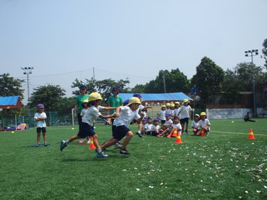 この日は秋晴れの気持ちのよいお天気の中、無事に運動会を迎えることができました 看板は、今年の万国旗と同じフルーツ柄。 ライムとオレンジのをあしらい、爽やかにさくらっこを迎えてくれました。 開会式 入場 いちご組さんにとっては、はじめての運動会 もも組さんもお父さんお母さんと一緒に入場します! なのはな組さんは今年から1人で行進がんばります はじめのことば さくら組さんのことばで運動会開幕です 立派な挨拶でスタートすることができましたね! うた ’’がんばれさくらっこ’’ 子どもたちの気持ちも高まって気ました いちご、もも組さんも、お母さん、お父さんと一緒に、フリつきで歌う姿も見られていました! 体操 ’’きょうりゅうダンス’’ みんなが、大好きになったきょうりゅうダンス しっかり体を動かして、準備万端で、、、いよいよ始まります! かけっこ いちご、もも組からのスタートです。 ゴール側にお母さん、お父さんがいると、涙が出てしまう姿もありましたが、 両手を広げて走っていく姿は、かわいく、一生懸命さが見られていました なのはな組 去年と違って走りっぷりも違います! よーいどんを今かいまかと待ちきれずにいる子どもたちの姿がありました! すずらん、さくら組 ゴールに向かって、走っていく姿は、たくましく、輝いていました。 「負けないぞ!」の気持ちがあふれていました! いちごもも組 ダンス・ダンス・ダンス お母さん、お父さんと一緒に踊るのを楽しみにしていた子ども達。 この日のために、親子でおうちで取り組んでいたようで、ありがとうございました。 当日は、恥ずかしい気持ちもありながらでしたが、 一緒にできた喜びは、子ども達の中でしっかり持っていたようでした。 さくら組 騎馬戦 各グループ、各家庭で、しっかり作戦を立てていたさくら組の子ども達。 お母さん、お父さんの背中の騎馬に乗りあがって、 戦闘対戦バッチリでスタートしていきました 見ていて、ハラハラしてしまう場面もあったのですが、 親子の絆で!! 誰も落ちることなく、全員が一生懸命の姿が見られていました! 今年も、白熱した騎馬戦を見ることができました なのはな組 GUTS! 一人ひとり手作りのポンポンを付けて、ダンスします! 子どもたちは手をまっすぐ伸ばすところなど、 取り組みで気づいたことを気をつけて当日が一番かっこよく踊りました いちごもも組 ゴーゴー列車 お部屋でも楽しんでいた列車ごっこ!この日は、大好きなお母さん、お父さんと一緒に、 列車に乗って出発していきました 待っている時から、「お山登るよー」「おにぎりやさんがね~」と言って、 保護者の方に、教えてあげる姿もありました。 ゆっくりのんびりと進んでいく列車もあったり、 抱っこしてもらって進んでいく列車もあったりで、 一緒に、列車の旅を楽しむことができました 保護者 くぐって!くぐって!フラフープ 今年も、沢山の保護者の方が参加して下さった≪保護者競技≫ ありがとうございました!! お母さん、お父さんの、子どもに負けないほどの、 熱い想い!が、現れていました! すずらん組 ~大蛇の巻~忍者修行 今日はお父さん、お母さんといっしょに忍者修行! 最後の大蛇には幼稚園に忍者から届いた手裏剣で戦いました さくら組 組体操 さくら組さんにとっては最後の運動会 最高学年のかっこいい姿に見ている観客席からは感動の涙でした 未就園児・兄弟児 トリプルパンケーキリレー 小さいお友だち、小学生のお兄さんお姉さんのたくさん参加で、 運動会を盛り上げてくれました なのはな組 リトルレンジャー 宇宙の旅にしゅっぱーっつ!!! レーザー光線やロボット、流れ星をジャンプしてゴールを目指します 競争負けないぞー!!! すずらん組 友よ ’’友よ’’の歌詞の部分の振り付けかっこいいですね みんな活きいきとダンスしていました 保護者 デカバトン☆リレー 今年のリレーは一味違います! そう!デカバトンなんです!! 持ち難いにもかかわらず、競争となると熱くなり白熱した試合となりました さくら組 円形リレー さくら組さんのリレー、2チームで真剣勝負!! どちらのチームも最後まで諦めず、とってもいい勝負でした 子どもたち以上に、ドキドキされていた保護者の方も、多かったと思います。 本当に、子どもたちのがんばりに、心打たれますよね。 心と、心でつないだバトンで、最後まで一生懸命の姿を今年も見せてもらえました。 子ども達の中でも、きっと大きな思い出になっていると思います。 閉会式 フォークダンス 運動会も終わりに近づいて来ました よくがんばったねといっぱいぎゅーっしてもらったね うた ’’園歌’’ 子どもたちが大好きな幼稚園の歌、声が響き渡ります おわりのことば さくら組さんの終わりの言葉で締めくくりでした 運動会に際しまして、保護者の皆様にはいつも あたたかくご協力いただきまして、ありがとうございます。 子どもたち、保護者の方々、職員が笑顔溢れる運動会となりました 最後になりま