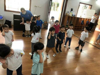 さくらHOA ANH DAO幼稚園の進級、入園のお祝いを6月にする理由として、 園生活に少しでも慣れたさくらっこみんなの姿を、 保護者の方々に見て頂き、安心してもらえたらと思い、この日にしています。 当日は、たくさんの保護者に見守られながら、緊張した表情が見られたのですが、 小さなお友だちは、先生と手をつないで入場することが出来ました。 まずは、みんなの大好きな手遊び『いっぴきのカエル』 子ども達の笑顔も見られてリラックスでき、各クラスの発表がスタートしました★ 《年中クラスすずらん組~手遊び、かみなりどん♪うた、世界中の子ども達が~》 トップバッターで発表した子ども達。 元気にみんなの前大きな口を開けて発表することができました。 お友だちと一緒に気持ちを合わせる大切さを感じたと思います。 《最年少クラスいちごもも組~お返事♪手遊び、サンドイッチ~》 全員が、涙なく前に出て発表することが出来た子ども達! 日々日常の姿を見せてくれました。園で楽しんでいる子ども達の姿を、 しっかりと保護者の方に見てもらえたことで、安心していただけたと思います。 これから、どんな成長を見せてくれるのか、たのしみですね★ 《年少クラスなのはな組~ダンス♪動物体操~》 少し恥ずかしくて、照れ笑いする姿が見られていたのですが、