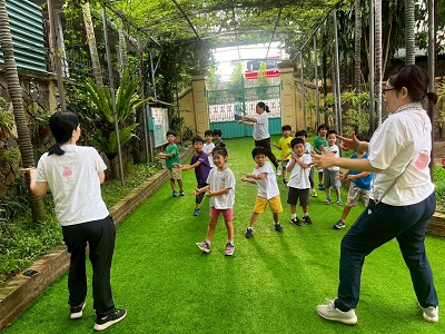 本番当日の10月5日は晴れ! みんなのレインボーパワーで雨雲を吹き飛ばしました!! 今年のスローガンは「レインボーさくらっこ」 みんなの気持ちをひとつにして、虹のようにひかり輝きますように! 心を込めて、虹の入場門と万国旗を作りました。 みんなで‘’レインボーさくらっこ‘’と掛け声をしてから、入場です。 開会式では、大きな声で‘’がんばれさくらっこ”を歌ったり、 準備体操の‘’チェケマッチョ‘’を元気いっぱい踊りました。 〇いちごもも はじめての運動会の子も多かったいちごもも組。 お家の人と一緒に元気いっぱい頑張りました。 ダンス「じゃんぐるぐるぐる」 親子競技「はじめてのおつかい」 〇なのはな ダンスにかけっこ、どれも一生懸命頑張りました。 お家の人に見てもらえたことが、本当に嬉しそうで、本番は一番ノリノリで楽しんでいました。 ダンス「アロハ・エ・コモ・マイ」 親子競技「うみへLet's Go!」 〇すずらん 旗を使ったダンスに挑戦しました。息ぴったりの動きがかっこよかったです! 親子競技のジャンケンは練習ではずっとすずらん組が勝っていましたが、本番はお家の人が強かったです ![]() ダンス「みんながみんな英雄」 親子競技「はしって、とまって ジャンケンポン」 〇さくら 最高学年のさくら組。みんなで力を合わせ今までたくさん頑張ってきました。 組体操にリレー、親子騎馬戦!!!どれも全力で取り組みました。 組体操「にじいろパワー!さくらぐみ」 親子騎馬戦「親子タワー頂上バトル」 リレー「さくらスピードスターズ」 最後まで諦めずに走る姿、本当にステキでした!!! ![]() ![]() 〇保護者競技 今年も白熱の戦いでした。 子どもたちもお父さんお母さんの頑張る姿を嬉しそうに応援していました! 「トトロの森の宅配便リレー」 「ダッシュdeボー」 〇兄弟競技 小中学生のお兄ちゃんお姉ちゃんも頑張りました!! 「綱引き」 〇閉会式 「海はパラダイス」 お家の人と手をつないだり、抱っこやぎゅー! 最後はみんなで輪になって踊りました。 最後にメダル、プレゼントのTシャツをもらいました。 今年のTシャツの色は''あか''! 幼稚園の20周年!そして、ベトナムの80周年ということもあり、 ベトナムカラーの赤色になりました。 実は、2010年初めての運動会記念Tシャツも赤色でした。 2度目の意義深い赤Tシャツです。 袖には、クラスカラーの虹色でベトナムの国旗の星型のデザインが☆ みんなが最後まで一生懸命頑張り、ステキな運動会となりました! さくらっこ!最高~!!!! ![]() インスタグラムでも、日々の様子が見られますので、そちらもご覧下さい!