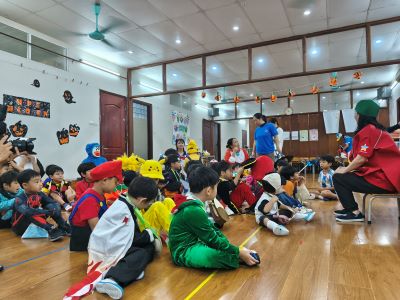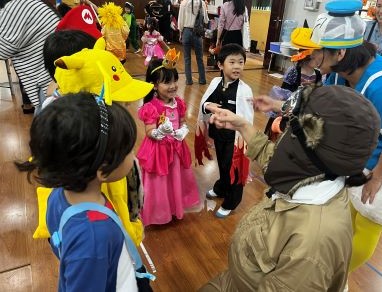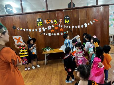 HALLOWEEN みんなの大好きなトゥントゥントゥンサフールも登場! 思い思いの仮装で登園する子どもたち 今年もみんなの笑顔が素敵です お家の方々と記念撮影をした後は、、 いよいよお楽しみのハロウィンパーティー! ハロウィンってどうして始まったの? どうしてかぼちゃを飾るの? そんなお話を聞いた後は、コーナーめぐりが始まります。 今年は3つのコーナーをめぐります。 絵本クラブさんのボール投げコーナー 上手に入れられるかなー? さくら組さんの〇✖ゲームは 問題を出題してくれるのもさくら組さんです! 先生たちのお菓子のお部屋では くじ引きを、、、 何が出るかな? 3つのお部屋をまわって、上手に「トリックオアトリート!」を言えたみんなは、お菓子をたくさんもらってホクホク顔 もらったお菓子は、おやつの時間に食べました ホールに帰ってきたみんなに、今日の衣装についてインタビュー みんなは何に変装したのかな? 記念撮影もしたよ お楽しみのランチは 「ハロハロハロウィンランチ」 スパゲッティーおいしいよ 今年のハロウィンも大成功 #さんさん Instagramでも日々の様子をご覧いただけますので、ご利用下さい。 ベトナム・ハノイの日系幼稚園 さくらHoaAnhDao幼稚園ホームページ |