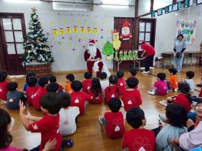 12月16日にサンタさんからお手紙が届きました。 サンタさんからのお願いは... 1.あわてんぼうのサンタクロースの歌を歌ってね 2.クリスマスツリーに飾りを飾ってね というメッセージが! サンタ文字で届きました♪ 12月22日クリスマス会当日。 ツリーの飾りつけ、クラスごとのクリスマス製作も出来て準備万端です。 「まだ来ないね...」と話していると、「あわてんぼうのサンタクロースを歌ってないよ~!!」と子どもたちから! サンタさんに聞こえるように大きな声で歌うと、窓からひょこっとサンタさんが!! とっても嬉しそうな子どもたちです。 サンタさんに質問をすると英語で答えてくれました♪ そのあとはサンタさんから魔法のジュースのプレゼントがありました。 さくら組 すずらん組 なのはな組 いちご・もも組 クリスマス会のお楽しみランチ 「あわてんぼう サンタランチ」 おやつはかわいいクリスマスケーキでした。 12月24日の夜、みんなのお家にもサンタさん来てくれるかな? #ballet Instagramでも日々の様子をご覧いただけますので、ご覧ください。 ベトナム・ハノイの日系幼稚園 さくらHoaAnhDao幼稚園ホームページ |