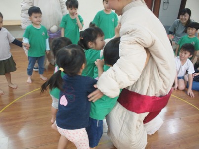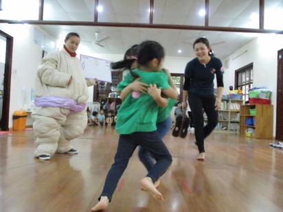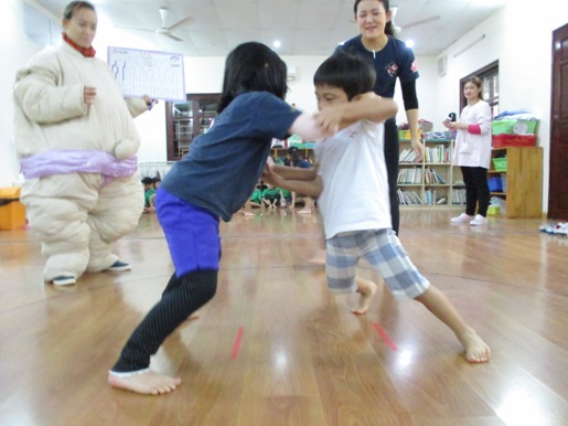 がっ!! 子ども達は、1月のお楽しみ会『おすもう大会』に向けて、 しっかり体を動かしました。 前日まで各クラス盛り上がって、幼稚園だけでなく お家でも特訓をしてくださり、 「お父さんとすもうしたよー」「ぼくお母さんに勝ったよー」と、 いろんな話をしてくれていました。 当日は、おすもうさんも来てくれて みんなで準備体操をして、 心も体もバッチリに始めることができました 全園児がホールに集まり、元気な声が広がっていました。 《いちご、もも組(最年少)》 小さな体でも、毎日クラスで取り組んできた成果が、 土俵にも現れて負けない力強さが、しっかり見られていました。 いちご、もも組らしい、、、 可愛さと一生懸命さも見ることができ、ついつい。。。 「かわいいー!!!」と、言ってしまうほどでした^^ 《なのはな組(年少)》 勝ち負けにこだわり始めた子どもたち。 悔しくて、涙が出てしまうこともあったり、お友達を応援したりする姿も見られていました。 「負けたらどうしよう」と、思ってしまうお友達もいましたが、 がんばるぞ!!の気持ちで、みんなが土俵に上がって、 楽しむことができました◎ 《すずらん組(年中)》 写真からでも伝わる、真剣な表情。 なのはな組よりも、体も大きくなっているので踏ん張る足も強く、 なかなか勝敗がつかずに、目が離せない対決になることも多かったです。 お家での特訓がしっかり現れて、負けない気持ちでみんながんばりました。 始まりの\どすこーい/の声、終わった後の「ありがとございました」 大きな声が広がっていました。 いつも見せてくれる笑顔ではく、 とにかく必死の表情がそこにはあり、小さな体でも、大きな心を感じました。 《さくら組(年長)》 さくら組は、最後のおすもう大会となりました。 誰一人と負けたくない!!絶対勝ちたい!! の、熱い思いが込められて、毎回!!白熱している姿と熱気が伝わってきました。 いつもは、なかよしのお友達。大好きなお友達。 でも、このときだけは!!ライバルとなって、手を抜くことなく、 とにかく!!一生懸命の子どもたち。 負けて悔し涙を流してしまう子ども達の姿を見ると、 大人も、胸が熱くなるほどで、悔しい気持ち、頑張った気持ちが、一気に感じとれました。 この経験は、これから子どもたちを大きくする大事な宝になったと思います。 1位…横綱 2位…大関 3位…関脇 おすもう大会トロフィーがもらえました。 かっこよく、ポーズを決めて写真を撮る事ができました^^ 最後に、おすもうさんと 小さなお友達も、負けない気持ちで立ち向かい、 周りの歓声にも、熱が込められていました◎ おすもうさんも、大きな体でドーーンと取り組むことができて、 最後まで楽しい時間を過ごすことができました。 お楽しみランチは しっかり、体を動かした後のみんなで食べるランチは、 特別美味しくて、たのしく食べることができました。 おすもうといえば、ちゃんこ鍋よね♪ランチの汁物はちゃんこでした。 異年齢で食べるので、お姉ちゃんたちがお手伝いしたりする姿もありました^^ この経験を大切に、これからも仲間の大切さ、諦めない心をもち、 大きくなってほしいと願っています。 おすもうさんのように、たくましくなってねー (#082) ベトナム・ハノイの日系幼稚園 さくらHoaAnhDao幼稚園ホーページ |