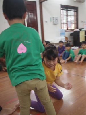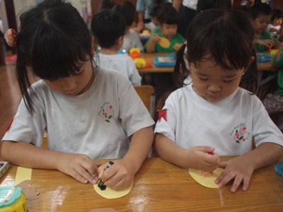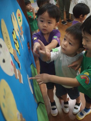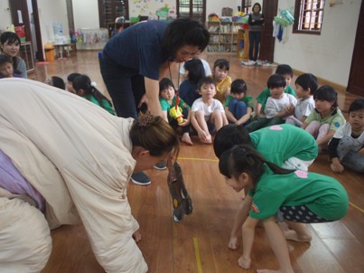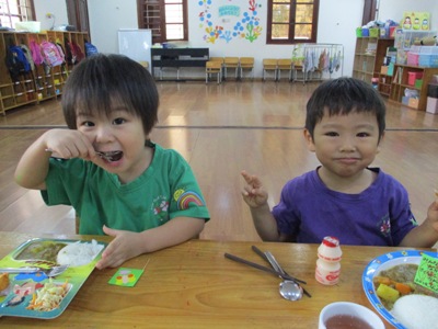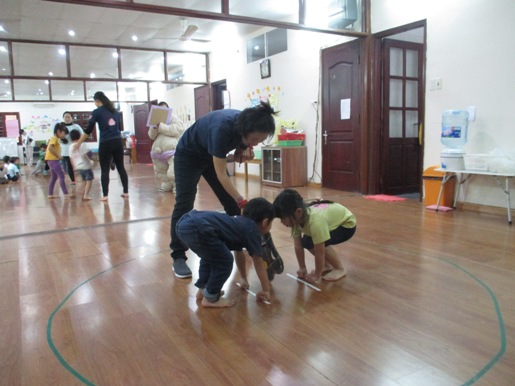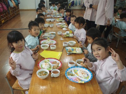 4月『なかよし会』がありました。 お楽しみ会では、4つの異年齢グループで活動することが多く、 初めての異年齢の活動でしたが、 小さなお友達をお手伝いする、お兄ちゃんお姉ちゃんの姿 とても、頼もしい姿でした。 4月の歌『つくしがでたよ』を歌い、お楽しみ会スタートしました^^ 元気いっぱいの子ども達の声が広がってました。 2つのグループに分かれて、子ども達の大好きなリトミックをしました。 うさぎーこうまーかめ、三輪車ーあひるー時計ーおふねーどんぐりーうみ この、お楽しみ会だけではなく、日頃の活動で取り組んでいるので、 はりきって、みんなで楽しんで参加することができました。 異年齢で活動するとことで、見てみての想いがさらに強くなったり、 楽しみながら、笑顔溢れて活動できました。 子ども達の笑顔を見ることができ、大人もほっこりした気持ちで、 いっしょに取り組み頑張りました(笑) つくしの製作も、グループで行いました。 みんなで歌っていた『つくし』ですので、口ずさみながら作っていきました。 クレヨンでつくしの顔を描き、糊で貼っていきます。 異年齢での活動ですので、糊の活動のお手伝いをしたり、 お姉ちゃん達の絵を見て、まねっこして描こうとしたりする姿も見られました 小さなお友達も、一生懸命に活動する姿…とにかくかわいくて、 今は、グルグルとなぐり描きでも、とっても味のある作品が出来上がりました。 出来上がった作品を模造紙に張っていきました。 「これぼくのできたよー」 「どこに張ったのー?!」「かわいいのできたね」 など、友だちの作品を見ながら完成を楽しみました。 各クラスで、つくしの作品の前で写真も撮りました。 お楽しみ会の給食は、<おたのしみランチ> しっかり遊んだ後は、おなかもぺこぺこ!! 今回のお楽しみランチのメニューは、子ども達の大好きなカレーライス おいしそうなにおいも、ホールに広がっていました。 隣同士になったお友達同士で、「おいしいねー」と、言い合いながら、 食事も楽しみました。 異年齢で活動することで、お友達を思いやる気持ち、憧れの気持ちなど、 大人が伝えて得るものではない、 子ども達自身が学んで得る大切な心を習得中です。 さくらっこらしく、のびのびと元気いっぱいに大きくなっていくのが楽しみです。 (#082) ベトナム・ハノイの日系幼稚園 さくらHoaAnhDao幼稚園ホーページ |