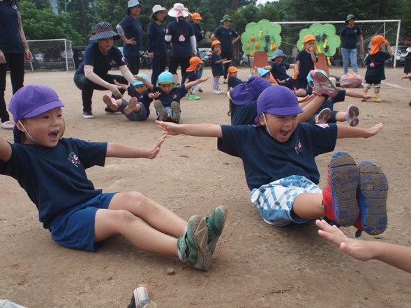 年々小以下のいちご・もも組の親子競技「もりのたんけんたい」