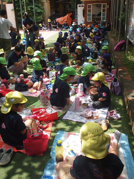 幼稚園に帰ってから、園庭でお弁当を食べました。