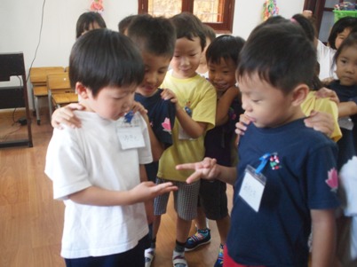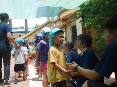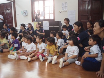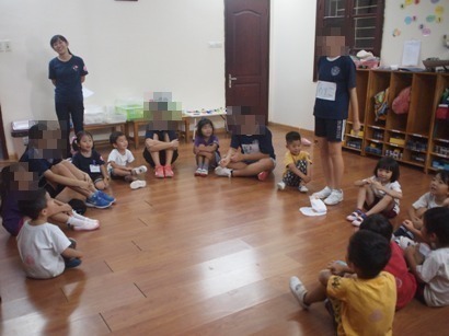 校外実習で幼稚園にやってきました! 子ども達からみると、お兄さんお姉さんはまるで 巨人のように見えるかもしれません。 ![]() それぐらい、門をぬけて訪れる16名の中学生は 大きく感じられました。 ホールでの交流会の様子です。 ![]() 生徒のみなさんが、楽しい劇を披露してくれました。 子ども達もよく知っている、サザエさんやちびまるこちゃんも 登場して、みんな興味しんしんでした。 ≪いちご組、もも組≫ 一番小さなクラスには、4人のお兄さん、お姉さんが遊びに来てくれました。 はじめは、子ども達ドキドキしていたのですが、 朝の会での名前呼びで、返事をしたり、手を挙げると、 「おぉー!すごいねー」と、言ってもらえて、 照れ笑いをする子ども達の姿がありました! まずは、絵本を読んでもらいました。 その後は、手作りおもちゃの 『ボールコロコロ迷路』『手作り人形、マラカス』で みんなで楽しく遊ぶことができました。 お兄さんに、遊び方を教えてもらうと早速遊び始めました。 少しずつ、慣れてきて子ども達の方から、 「これは?」「やってやって!!」「ねーねー見ててね!」 と言って、関わる姿が見られていました。 また、 「これ読んで」と言って、お姉さんに絵本を渡し読んでもらいました。 最後は、みんなで仲良く遊ぶことができて、笑顔でさよならもでき、 とてもたのしい1日になりました!! 《なのはなぐみ》 なのはなぐみにも4人のお兄さん、お姉さんが遊びに来てくれました。 まずは、お兄さん、お姉さんと輪になって自己紹介をしました。 「なのはなぐみもお名前教えてあげようね。」とお話すると、 ちょっぴりドキドキした表情をしていた子ども達でしたが、 「○○です。」ときちんと名前をいうことができました。 かっこよかったです。 ◎絵本の読み聞かせ◎ 優しい声でゆっくりと読み聞かせをしてくれた お姉さん。 子ども達は最後まで真剣に聞き入っていました。 その後は、中学生がボウリングを作って準備してくれました。 手作りのペットボトルのピンがとっても可愛くて、 子ども達は目をキラキラさせ、「かわいいー ![]() 大盛り上がりでした。 ボウリングが初めてのお友達もお兄さんとお姉さんと 一緒に笑顔で楽しむことができました。 ◎お絵かき◎ 好きなペンを片手に思い思いに絵を描き始めたなのはなぐみ。 お兄さんお姉さんにアンパンマンなどを描いてもらったり、 お話をしながら、楽しい時間になりました。 お兄さんとお姉さんと『タッチ』をし、 「また来てね。」とにこにこでお別れをしました。 子どもたちにとって、笑顔溢れる1日となりました。 《すずらんぐみ》 みんなで、輪になって自己紹介をしました。 子どもたちの、はりきって自分の名前を大きな声で 言う姿が素敵ですね。 中学生のお兄さんお姉さんが、今日の日のために たくさんの遊びを用意してきてくれました。 魚釣りゲームの様子です。 子ども達に分かりやすいように、一生懸命説明してくれる 中学生。なかなか釣れない時にも、優しく声をかけてくれ 一緒に遊んでくれ、子どもたちはとっても嬉しそうでした。 その他にも、絵本の読み聞かせや宝探しゲームなどなど 盛りだくさんで、とても楽しい時間でした。 《さくらぐみ》 朝から幼稚園に登園してくると、子どもたちは「おにいさんおねえさんきた?」と とっても楽しみにしていました。 さくら組さんにも、お兄さんお姉さんがきてくれて 子どもたちは大喜びのようすでした。 読み聞かせの絵本もおもしろいものを持ってきてくれていて、 子どもたちに読んでくれました。 そして、じゃんけんれっしゃをみんなでしました! お姉さんの弾いてくれるピアノが止まると、 「じゃんけんぽん!!!」 長い列ができ、最後の勝負では白熱していました! さくら組の子どもたちのしたいことをぜーーんぶ お兄さんお姉さんは聞いてくれました! 「つぎは、いつくるの~?」と聞いているお友だち もいたりと子どもたちにとって特別な時間になりました。 今日の給食は、おべんとうスタイルです。 お兄さんお姉さんと、レジャーシートを一緒に敷いて、 楽しく食べました。 お弁当の後は、外遊び! 子ども達の大好きな時間です。 中学生のみんなも、子供の頃にもどったように スコップ片手に大きなお山を作ったり、 しっぽ取りや縄跳びをして、一緒に楽しい時間を 過ごことができました。 楽しかった時間も、終わりが近づきました。 お別れの時間です。 今日の時間がこんなに楽しかったのは 中学生のみなさんが、子ども達のために たくさん悩んで考え、準備をしてくれたおかげ。 本当にありがとうございました。 最後は1人1人ずつと、握手にハイタッチ。 最後まで別れを惜しむさくらっこでした。 また、ぜひ遊びにきてくださいね。 ベトナム・ハノイの日系幼稚園 さくらHoaAnhDao幼稚園ホームページ |