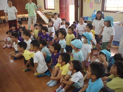 すずらん組さんと、もも・いちご組さんはお散歩に行ってきました!! お兄ちゃん、お姉ちゃんと一緒、小さなお友達と一緒でみんな嬉しそうです。 幼稚園の角を曲がって一番に見えてきたのは黄色い花。 「あ、あそこ!あったよ!!」 ピンクの花や、白い花、再び黄色い花…と何か見つけるたびに、元気な声で嬉しそうに知らせてくれた子ども達。 日本では見ない、ザボンやガックという実も実っていました。 白いお花は、甘い香りがしています。 うーーーん、いい香り! どれどれ・・・あっ、本当だ! 池のほうへ向かうと…「あっ、バナナだ!!」 池には何かあるかなぁ? 大きな葉っぱを発見しました。 この葉っぱ、表面がけばけばしています。 帽子をくっつけても、落っこちません。やってみせると、 「ぼくも(わたしも)やりたい!!」 と、次々と試していました。 白いナス?や赤くなりつつある唐辛子、独特な形をした植物、 まだまだ色々なものがありました。 ハノイならではのお花や果物をいっぱい見つけられたお散歩。 自然の実りや、変化を目に出来る時期(ハノイも秋です)なので、 これからもみんなでお散歩に行って、沢山の発見をしていきたいと思います。 レゴ ベトナム・ハノイの日系幼稚園 さくらHoaAnhDao幼稚園ホームページ |