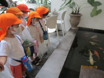 久しぶりに、園外散歩へ出かけました☀ 元気いっぱいに、「いってきまーす!!」と、わくわくいっぱいに出発していきます! この日は、お弁当だったこともあり、 水筒を肩から掛けて楽しみいっぱいに出発しました!! 写真からも、元気いっぱいが伝わりますね◎ 園外散歩に出るのが初めてのお友だちもいたり、 久しぶりに行くお友だちもいたので、 「ここになにがあるかなー?!見てみみてー」と、お友だち同士で話をしたり、 家の中から「わんわん!」と聞こえて、 「あー!!ここに犬がいるんじゃなーい」と、大発見を喜んでいました^^ 大好きな葉っぱ拾い! 大きな葉っぱあるかなーっと、見つけていたり、 拾うだけではなく 「ここの色が違うねー。なんだろうねー」と、いろんなことに気が付いていました。 こうやって、自ら気が付く力。どうしてなんだろ?!と、疑問に思う気持ちが、 子ども達の成長につながっています。 そして、子ども同士で話をして会話が広がっています! 大人が教えるのではなく、遊びを通して学んでいく! これがさくらっこですね** 散歩コースには、大好きなお魚も!! お魚たちに久しぶりに会えてよかったね!! いっぱい遊んだ後は、お待ちかねのお弁当を、 喜んで食べていました!! この、幸せそうな表情!! 愛情たっぷりのお弁当をありがとうございます!! これから、一年間どんな姿を見せてくれるのか、 とっても楽しみにしています!! 子ども達の成長を、職員全員で見守っていきますので、 どうぞ!!よろしくお願いします。 ※インスタグラムでも、子どもたちの様子がわかります。ぜひ、ご覧ください! (#082) ベトナム・ハノイの日系幼稚園 さくらHoaAnhDao幼稚園ホームページ |