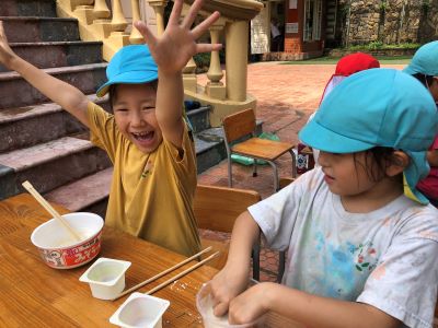 9月も、あっという間に終わり、、 子どもたちは日々いろいろな活動を通して、大きくなっています。 9月は、 『SSA (さくらスポーツアカデミー)』の方が、 幼稚園に来てくださって、園庭でサッカー、 ホールで空手を、教えてくださいました!! この夏、楽しめる様になってプール活動!久しぶりの、ルネサンスプールでは、 子どもたちもできるようになったことを見たもらったり、 自信にもつながっています! 園庭では、 絵の具遊びで、ジュース屋さんをしたり、 外で遊んでいると、雨が降ってきて合羽を着てケーキ作りをしたり 天気のいい青空の下で、 机といすを用意して小麦粉粘土遊びをしました。 「やったー!!お水入れて、できたー!」と、 大喜びの表情や、園庭に元気な声が広がっていました。 運動会の活動を取り組みつつ、 こうやって、静の活動、動の活動を通して、心も体も大きくなっています! 10月も、 のびのびと成長していく子どもたちが楽しみです。 ※インスタグラムでも、子どもたちの様子がわかります。ぜひ、ご覧ください! (#082)ベトナム・ハノイの日系幼稚園 さくらHoaAnhDao幼稚園ホームページ