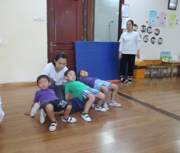 題して…『すずらんサーカス団』 運動遊びを、サーカスの技に見立てて、楽しく活動して来ました どんな技なのか…ちょっと覗いてみましょ~ おや、、、 なにやらお尻を上げて、トンネルのようになったところをくぐっています お尻を上げるお友達も腕を伸ばして、お友達をつぶさないように一生懸命ですが、 下を通るお友達も、早く通る気持ちでいっぱいで前に進んでいます みんなの心がひとつになっていますね クルリン ジャクパ体操教室で教わった前周り、上手にできるようになりました 始まりのお返事もかっこよく、やる気がみなぎっています なにやら見えていますのが、、ぞうさん 勢いがしっかりと伝わる写真ですが、これは、、なんの技でしょうか。。。 子ども達の思いっきりが表れていますね こちらも、ジャクパ体操教室で教わった『鉄棒』 ご覧のとおりしっかり、安定して取り組むことができるようになっています 待っているお友達のドキドキ感も伝わってきますね みんなで、1つのことに取り組み、心をひとつにする大切さを日々子ども達と感じています。 みんながいるから育つ心と、できることはたくさんあります トラブルになったりもしますし、笑顔で大発見することも 日々の生活を大切に、これからも、 のびのびと大きくなっていく姿を大切にしていきたいと思います 七夕会での『すずらんサーカス団』の様子は、またお知らせします #082 ベトナム・ハノイの日系幼稚園 さくらHoaAnhDao幼稚園ホームページ |