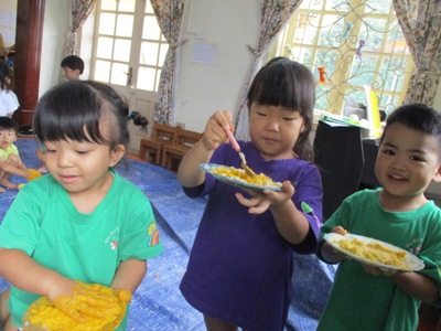 お部屋では、大好きな感触遊びを楽しんでいます 少し、暑さも落ち着いてきたハノイで外遊びも楽しんで過ごしています まさに行楽の秋をたのしんでいる、なのはな組 風で葉っぱが落ちているのを発見して、広い園庭の砂場で作るケーキやお団子に、 デコレーションして、素敵に作っています。 最近は、お友達が大好きで、1人で遊ぶことよりも、 お友だちと一緒に!と言って、過ごすことも多くなっています 「〇〇ちゃんとあそびたかったー」と言って、トラブルになることもありますが、 そうやって、相手に思いを伝えたり、相手の気持ちを知ることができたりして、 大人が伝えることではない、子ども達自身で学んでいる最中だと思います。 また、異年齢での活動も増えて、 まだまだ3歳のなのはな組も、小さなクラスではお兄ちゃん、お姉ちゃんの姿もあり、 思いやる気持ち、優しさが、関わることでしっかりと、育っています 12月には、さくらっこ美術館(作品展)が今年も開館されます! それに向けて、芸術の秋!スタートしています いまから、どんな作品を作っていくのか、楽しみにしていてください 給食では、フォーク、スプーンと一緒に箸を使って食べています 始めは難しく、「どうやってもつのー」「できなーい」と言っていましたが、 おうちでの協力もあって、少しずつ慣れて使えるようになってきました。 今では、みんなで最初の10分は箸で食べようねと言って、もりもり食べています。 まさに…食欲の秋ですね 読書の秋、スポーツの秋、睡眠の秋… いろんな事が意欲的になってくる季節でもありますので、 元気いっぱいに毎日楽しく過ごしていきたいと思います #082 ベトナム・ハノイの日系幼稚園 さくらHoaAnhDao幼稚園ホームページ |