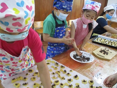 板チョコを切っていく 少し温めていたので、切りやすくなっています。 ラップにのせて、綿棒で伸ばしていく 綿棒にくっついてしまったりしながらも、ぐっと力を入れながら、 平らになるように伸ばしていくことができました。 型を抜いていきます。 全園児に先生たちですから、、、 すごい数の型抜きを、ひとつひとつ取り組んでいきました。 こちらが一番、、静かに集中して作り上げていきました。 ひとつひとつにチョコをのせていく 「わぁー手にチョコがついちゃった!」と、笑って教えてくれて、 すべて終わると、ペロッとしていた子どもたちでした!! こんなにたくさん作りました!! できあがって、「さくらぐみってやっぱりすごいねー」「すごすぎ」と、 自信たっぷりの、やり切った感じが伝わりました!! オーブン170度で15~20分焼く 給食先生お願いします! 出来上がり☆ラッピング さぁー!!出来上がりを見て、感動していました。 たくさんのクッキーをみて、「あっ!これ僕がつくったものだ」と、嬉しそうでした。 ここだけの話で、ひとつ味見をして、、、「おいしすぎるー」と、大感動していました◎ 自分たちで作ったものは、格別であり、 そして、誰かに作ってあげるという気持ちがしっかり詰まった、 特別なクッキーが出来上がりました。 袋詰めも、子ども達がしていき、 「小さなお友達は、小さいほうがいいかな。。」と、 ちゃんと考えてあげられる、優しい気持ちが見られてうれしかったです◎ ひとつひとつに、感謝の言葉のメッセージもつけました** きっと、さくらっこみんな喜んでもらえるね!と、 プレゼントすることをわくわくしているさくら組です! 最後のクッキングで、素敵な思い出になった子ども達☆ 作るだけではなく、 誰かに思って作ってあげたり、プレゼントする喜びを感じることができたらと思います。