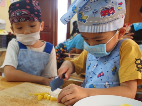 二学期が始まって、初めてのクッキングをさくら組さん(年長組)がやりました。