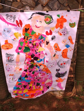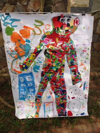 さくら組(年長)は、 4つのグループを子どもたちで作り、等身大のハロウィン衣装を作りました。 まずは、どんなものを作りたいか話し合い、下描きをすることからはじめました。 男の子達の方が早く決まり、 女の子達は、こだわりと、憧れが作品表れていて、下書きのところから、 ここは、ピンク!ここにキラキラをつけたい!という想いが表れていました。 そのあと、 模造紙の上に寝転び、なぞって土台作りです。 指の間もなぞって、「こんなに大きいんだねー」と言って、 自分の形をみていました^0^ グループの中では、 頭は、○○ちゃん!足は、○○君!と言って、 分かれて描いているグループもいて、みていて思い白かったです。 形が出来たら、 クレヨンや絵の具で塗ったり、紙をちぎったり、シールを貼ったりして、 それぞれの素敵な衣装を作っていきました。 各グループが、下書きの時よりも、想像力を膨らまして、 「やっぱり、ここは違う方がかわいいよー」 「もっと、キラキラつけよう」と言って、 思い思いに作り出し、個性が溢れていました!! 一体これをどうするんだろう・・?と、何度も思うほど、 大人では考え付かない発想や、工夫の連続でした。 そして、4日かかって… やっと完成しました!! 自分達のグループだけでなく、お友達のグループの作品を見て、 「ここのキラキラすてきだね!」 「いっぱい貼ってすごいねー!どうやってつくったの?」 「目もかわいいし、全部かわいい!!」 と言って、友達のことも認め合ったりする姿が見られました。 1人ではなかなか作り上げることが出来ないことも、 みんなで、アイデアを出したり、時には、意見がぶつかることもありながらも、 一つの作品が出来上がった時の、喜びは大きなものだと思います。 こういう経験を大事にしながら、 これからも様々な活動に取り組んでいきたいと思います。 (#082) ベトナム・ハノイの日系幼稚園 さくらHoaAnhDao幼稚園ホームページ |