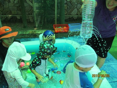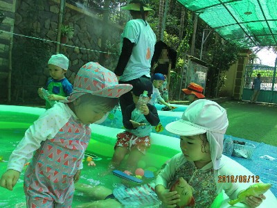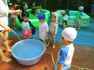ぷーるびらきで、水の神様から頂いた 神様に届くようにお願いをしました。 これで、今年のプール活動もバッチリ プールの前の準備運動で、体を動かし、ちょっと汗をかき、 しっかり、シャワーで体を洗い、 いざ わぁぁー!!雨のシャワーだ!! お顔にかかってもへっちゃらさー と、ほとんどのお友達がプールに慣れ親しんでいますので、 しっかり楽しむことができています お魚集めをしたり、 おがわのめだかがすいすいすーい 賑やかなプール活動をしています 「ほら!みてみてー」 なんと!かっこいいワニさんを見せてくれました プール大好き いろんな事が、友達同士でできるようになり、 それを自信をもって見せてくれるようになって、 子ども達もたくましくなってきました。 今年の夏で、さらに (#082) ベトナム・ハノイの日系幼稚園 さくらHoaAnhDao幼稚園ホームページ |