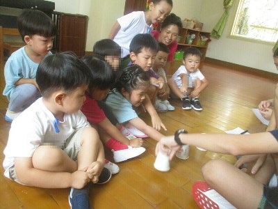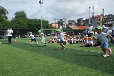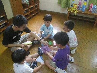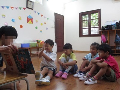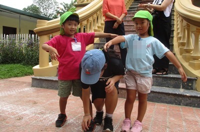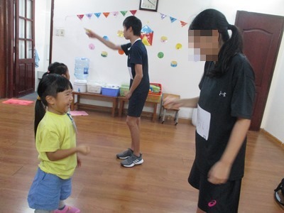 さくらHOA ANH DAO幼稚園に保育実習で遊びに来てくれました!! 子どもたち、この日をずっと楽しみにしていました。 まずはホールに全園児が集まって中学生さんたちが考えた劇を見せてくれました。 「狼と7匹のこやぎ」の劇でした。 原作を少しアレンジした内容にみんな釘づけでした 終わってからアンコールを求める子どもたち。 快く応じてくれて内容も一度目とつじつまが合うように変更してくれて、 参加させてもらえたりもして、子どもたちは大満足でした♪ お礼にさくらっこの大好きな園歌をきいてもらいました。 感謝の気持ちもこもっていつも以上に素敵な歌声となりました。 さあ、お楽しみはまだまだ続きます。。 次は各クラスに別れての活動です 〈いちご・もも組〉 3人のお兄ちゃん、お姉ちゃんが一緒に遊んでくれました。 はじめは、どきどきと緊張していたのですが、 自己紹介をしてくれて、子どもたちからの質問タイム!! 前日からお兄ちゃんたちに聞きたかったこと… 「何歳ですか?」「好きな食べ物はなんですか?」と、 話をするうちに、すぐに打ち解けて楽しい時間をすごすことができました^^ 『消しゴム当てゲーム』 子どもたちにわかりやすく、ルールを変えてくれたり、 一緒にすることができました。 お兄ちゃんたちがコップを動かすのが早すぎて、 「もぉー!はやすぎー!!」「もう少しゆっくりしてー!!」 といって、盛り上がりました! ほかにも、『しりとりばくだんゲーム』をして、 ボールを転がしたりするゲームをして楽しみ、絵本も読んでもらいました。 幼稚園にはない本や、好きな絵本だったので、子どもたちも興味津々で、 お姉さんたちも、「学校で練習してきました!」といって、 とても子どもたちに分かりやすいように読んでくれて、聞き入っていました。 「もう一回読んでー」と、リクエストしているほど^^ 最後は、折り紙を一緒に折ったり作ったりしてくれて、 とっても喜んでいました。 プレゼントしてくれた折り紙は大事に持って帰りました。 楽しい時間をすごせて、だっこやおんぶまでしてもらえて、 子どもたちにとっても、素敵な思い出になった時間をすごすことができました!! (#082) <すずらんぐみ> 前日から中学生のお兄さん、お姉さんが来ることをとっても楽しみにしていました。 すずらんぐみには、お兄さんお姉さんが一人ずつきてくれ、まずは絵本を読んでもらいました。 ゲームもたくさん考えてきてくれていて、まずは“あいたたじゃんけん”からスタートです。 じゃんけんで負けてしまったら、足をどんどん開いていかなければならないので負けないように必死です 他には、なんでもバスケット、転がしドッチ、宝探しゲーム、そしてさくらぐみさんと合同でだるまさんころんだもしました。 どのゲームも大好きなものばかりなのと、お兄さん、お姉さんとするのでいつもよりもとっても盛り上がりましたよ。 『つぎはなんのゲームするかな?』とわくわくする姿も ご飯の前には手作りのプレゼントをもらい、大事に大事に持って帰りました。 お昼ごはんでは一日一緒にすごしたお兄さんお姉さんを『こっちでいっしょにすわろー』と呼ぶ姿もみられましたよ ご飯をたべてからも“石・木・氷おに”をしていっしょにあそびました。 お姉さんに、木になって固まっているお友だちを、枝に下をくぐって助けてもらいました どの遊びもとってもたのしくって、『げつようびもまたきてほしい とても楽しい1日をすごせいい思い出ができました。 (きいろちゃん) <さくらぐみ> 何日も前から「後何回寝たらお兄さんお姉さん来る?!」とすごく楽しみにしていたさくらぐみさん。ついにこの日がやってきました。 まずはじめに絵本を読んでくれました。 大好きなお兄さんお姉さんの読んでくれる絵本は好きなシリーズだったり、昆虫の絵本だったりでいつも以上によく集中して聞くことができました。 そのあとは考えてきてくれた、ハンカチ落としをしました。 子どもたちもよくする好きな遊びのひとつで、すごく盛り上がりました♪ すずらんと合同でだるまさんが転んだをしたり、ジェスチャーゲームをしたり、何をするにも楽しくて仕方のない様子でした そしてさくらぐみは始まる前にあるお願いをしていました。 それは、、、組体操を見てもらうこと! 快くOKしてくれた中学生さん♪ 見てくれるとなるとより一層気合がはいります。 決めるところをしっかり決めてがんばりました。 「小さいからだでここまでできるのは本当にすごい!」 「僕たちにはできないようなことをしていて感動した!」 などたくさんほめてもらいました。 ニヤニヤがとまらないさくらぐみさん 見てもらう喜びを存分に感じて、ほめてもらい、大きな自信に繋がったと思います。 ご飯をいっしょに食べてる間もたくさんお話をする姿がみられました。 中には「あのお兄さんみたいになるんだ~」と強く憧れを抱く姿もあり、思い出に残る貴重な機会だったなと思いました。 (potato) 一