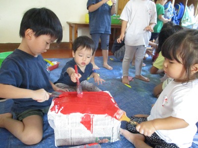 開館します!! 毎年この作品展では、異年齢で作り上げていく大型作品がありますが そのグループ活動が始まっています。 今年のテーマは、 『遊園地』です!! 聞いただけで、、、わくわくが止まらない子ども達の表情が目に浮かびますね◎ その日その日の活動は、子ども達一人ひとりに聞き、 子ども達自身がやりたいことを選んで、活動に参加します。 小さなお友達も、イメージがわきやすいようで、 「今日はバス作るのー!!」「一緒に、観覧車つくろうねー」と、 話をする姿が見られています。 この、大きなダンボールは何を使うのでしょうか。。 子ども達からの発想は無限で、「こんなのがいい」「こうしたい!」と、 みんなで話し合って作っていきます。 小さなお友達も、ビリビリ上手に新聞をちぎっています。 「こくらい?」と、お兄ちゃんたちに聞いてちぎる姿や、 「じょうずにできてるー」と、言ってくれるお姉ちゃんたちの姿もあります! 絵の具活動もダイナミックに取り組んでいます。 この色で作られたものは、何になるんでしょうか。。 たのしみいっぱいですね! 筆で、色を塗るのも上手になってきました! こんなに楽しみながら、いい表情で活動しています。 大人も、子ども達の表情をみると楽しみになってきませんか?! 色んな活動を通して、子ども達は大きくなっています。 完成を楽しみにしていてください! 毎回のお洗濯、準備、廃材のご協力、本当にありがとうございます。 #082 ベトナム・ハノイの日系幼稚園 さくらHoaAnhDao幼稚園ホームページ |