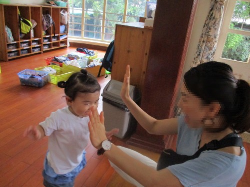 4月は、涙が出てしまっていた、朝の分離も、、、 今では、笑顔でバイバイタッチ!!ができるようになりました。 大きな成長ですよね◎ あっさり、バイバイされちゃうと、、、ちょっと寂しくなってしまうかもしれませんが、 子ども達は、幼稚園がたのしい!幼稚園が大好き!!となった姿だと思います^^ 朝の会では大きな声が響いています◎ 着脱も自分でできる事も増えて、お友達のまねをしてズボンをはこうとしています。 時には、甘えたい気持ちになって、できる事も、、 「…手伝って。。」と言うお友達もいますが、いつもがんばっている姿を見ていると、 「一緒にやろうか」「1つおてつだいしようね」と、声をかけています。 できるでしょ! と、声をかけるのではなくて、 「一緒にしよう」と伝えて、気持ちを汲んであげるだけで、 子どもたちはさらにやる気になり、できる事も増えてくると思います。 給食も、よく食べるようになり、ほとんど完食する姿が見られるようになりました。 イヤイヤといって、口にしないものも、 お友達パワーでぱくって食べてみたり、 「たべたよー!!」と、言って、喜ぶ姿は、キラキラ輝いています☆ 歯磨きもばっちり☆ 一日しっかり遊んで、ごはんも食べた後は、、 はみがきも、立派にできています◎ ちなみに、この後もちゃーんと大きなお口を開けて 仕上げ磨きさせてくれていますよ。 寝る前の黙想も、とっても上手にできるようになっています。 『すいちゅーめがねをくるりんぱっ!もくそうはじめっ!!おめめをぎゅっ!!』 と言って、やっています! しっかり遊んで、体がとっても疲れているのか、みんな毎日寝ています。 寝顔がほんとに!!天使のようですね。 癒されています◎ 帰りの準備もタオルを自分で片付けてバッチリ☆ 毎日、毎日、 いろんなことを吸収して、大きくなっていく子ども達。 イヤイヤモードになったり、甘えたい気持ちが出たりしながらも、 しっかり成長しています!! この夏休みで、今よりもっと大きくなっていくと思います!! 是非、いろんな場所に出かけて、いろんな姿を見てあげてください◎ 夏休み明けの子ども達の姿を、すごーーく!!楽しみにしていますね^^ (#082) ベトナム・ハノイの日系幼稚園 さくらHoaAnhDao幼稚園ホームページ |