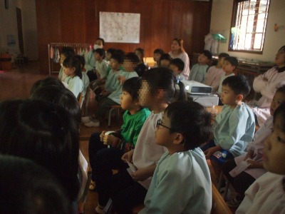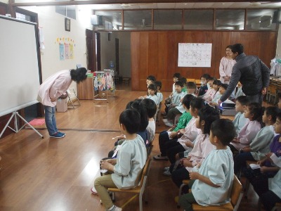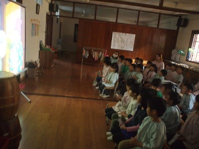 『日本昔話』の映画が開館されました 今年一作目は、、、 前日に映画のチケットをもらっていますので、ワクワクいっぱいのこども達! 館長の<映画大好きっこ>さんに、スタンプを押してもらいます。 久しぶりの映画会なので、子どもたちの嬉しさが伝わりますね◎ 今回のスタンプはなにかな?と、覗き込んでいます^^ はじめに、、、 館長<映画大好きっこ>さんからの、新年のごあいさつ** 「あれー!いつもとちがーう!」と言って、 新年ニューバージョンの館長さんに気がついていたお友達もいました^^ みんなの今年の目標を叶えるために、特別に変身したんですって♪ さぁーそれではスタートです★ いつもの、日本昔話ではなく、今回はこちらの、、、 <榊原郁恵さん>と<渡辺徹さん>の吹き替えバージョンを楽しみました。 さぁーいよいよはじまります 子どもたちも知っている話だったので、犬が出てくると、 「あ!しろー」と、名前を知っていたお友達もいました。 犬の『しろ』が、いじわるじいさんにやられてしまうところは、かわいそうで、、 目を閉じてしまったり、真剣に見ていました。 かぐや姫は、なんと!! さくら組(年長)が、発表会の劇をする内容なのです。 なので、子どもたちも「やったー!」と喜んで見ていました。 竹から生まれた時のかぐや姫を見て、 「ちいさくてかわいいー!」と、目をキラキラさせて、 最後のおじいさん、おばあさんとの別れのところは、 やっぱりさみしくて、子どもたちも映画に入り込んでいました。 生活発表会前で、子どもたちも集中して日々、活動していますので、 楽しみ持って過ごしていきたいです。 2月もすでに予定されている映画会 どんな映画かなー (#082) ベトナム・ハノイの日系幼稚園 さくらHoaAnhDao幼稚園ホーページ |