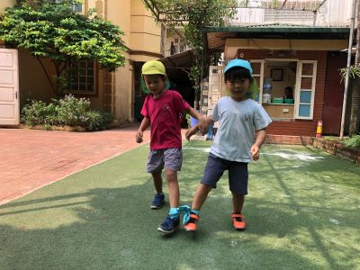 年中(すずらん組)も、毎日元気な声が園庭に広がって体を動かしています!! 運動会の親子競技では、 色々な動きのある運動で競争します! 一学期から取り組んでいた『鉄棒』 お部屋でやっているリトミックの『ワニ』 2人で力を合わせる『手押し車』 そして、今回初めての取り組みの『二人三脚』 はじめは、「1.2!1.2!」の、掛け声も合わずに、、 フラフラしてしまい、子どもたちも「えー!!難しい」と言っていたのですが、 今では、お友達同士でも 「1.2言おうねー」「1は大きく足を出すよねー」と、 協力して、声を掛け合い、取り組む姿が見られています◎ 色々な取り組みを通して、できたの自信の気持ちを大切にしていきたいです◎ おうちでも、応援いつもありがとうございます!! ※インスタグラムでも、子どもたちの様子がわかります。ぜひ、ご覧ください! (#082) ベトナム・ハノイの日系幼稚園 さくらHoaAnhDao幼稚園ホームページ |