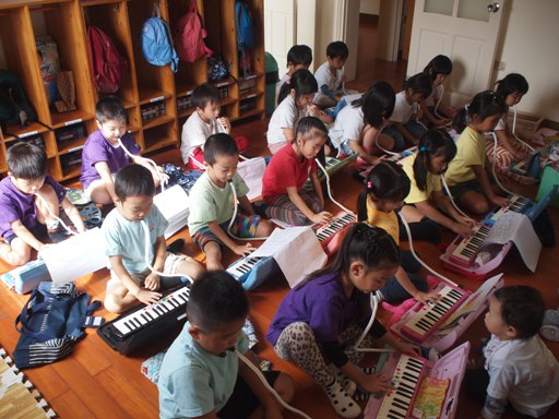 さくら組(年長組)は、鍵盤ハーモニカの活動があります。