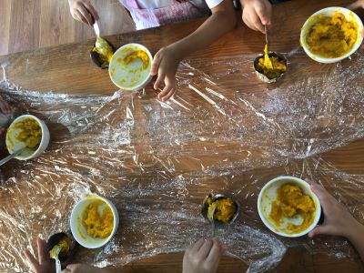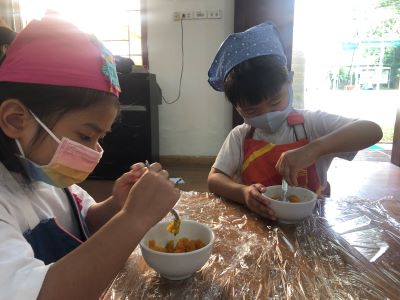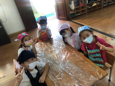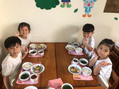 10月のクッキングを、とっても楽しんでいた、年中すずらん組!