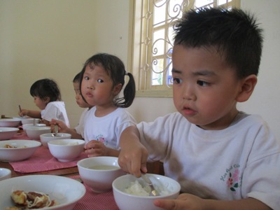 4人のお友達が仲間入りしてくれ、更に賑やかになりました うれしいです 休み明けなので、幼稚園生活を思い出し、 子どもたち1人ひとりが安心できる環境づくりをしよう! と、ベトナム人の先生達とお話しています。 お部屋での様子。 「おまたせしました~。ごはんですよ」 朝の会の様子です♪ きをつけぴっ。 お名前を呼ばれ元気にお返事! 外遊びも元気いっぱい。 給食もモリモリ食べていますよ。 お昼寝前はしっかり黙想して、おやすみなさい 日常をゴキゲンで過ごせるように、生活リズムを整えて 楽しく過ごしていきたいです。 (こけし) ベトナム・ハノイの日系幼稚園 さくらHoaAnhDao幼稚園ホームページ |