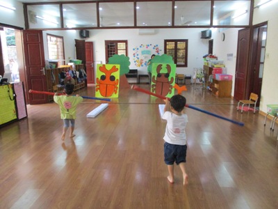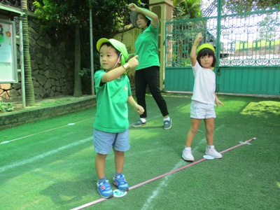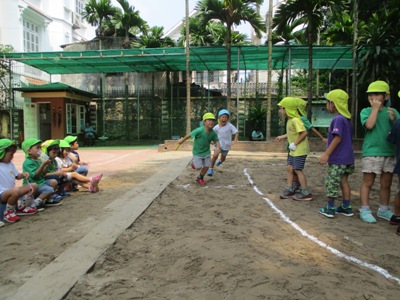 グランド練習も始まり、運動会への気持ちも、ますます高くなってきています。 なのはな組(年少)は、 ダンス、かけっこ、親子競技(運動あそび)に参加します。 すぐにダンスの曲も覚えて、曲を流すと自然に体が動いていました。 「今日もダンスするかなー?!」と言って、大好きな活動のひとつになりました。 かわいい姿や、一生懸命の姿を、見せてくれています。 小さなクラスのダンスは、親子でダンスをするので、 一緒に他のクラスのダンスもたのしんでいます! 外が雨の日には、広いホールでかけっこの活動も取り組んでいます。 思いっきり走り、体を使って過ごせる事! 子ども達にとって、大切なことですよね!! なかなか、ハノイではできないことを、 幼稚園でしっかり取り組むことができています! がんばる姿や、笑顔が、きらきらと輝いています。 親子競技の運動遊び! さぁー、、これはどんなことをしているのでしょうか?! そして、遠くに見えるものは、、なんでしょうか?! どんな取り組みをするのか、お楽しみに!! 応援グッズも作りました。 「がんばれ~!!」と、元気いっぱいの声が届くように、 【メガホン】を作りました。ストロー通しに、折り紙をはさみで切り糊で貼って、 簡単に出来上がり、さっそく、さくら組のリレーを応援しました。 子ども達の声が広がり、さくらぐみの勢いが増していました。 写真でも伝わる白熱した、戦いがありました!! どのクラスも、運動会に向けてたのしく取り組んでいます。 まだまだ、ハノイは暑く、キラキラと汗が輝いていますが、 元気よく心も体も成長している姿をたのしみにしていてください! #082 ベトナム・ハノイの日系幼稚園 さくらHoaAnhDao幼稚園ホームページ |