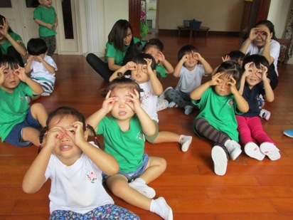 お外でも、いちご組、もも組(最年少)も元気に活動しています◎ この日は天気もよく 『宝探し』『トランポリン』『パラバルーン』をしました。 まずは、 各クラス、ホール、園庭を使って『宝探し』スタートです!! 前日に、宝探しの『宝』の写真を貼っておいたので、 子どもたちも、 「探しに行くぞー!」と、やる気いっぱいです! 階段に気をつけて、3階のなのはな組(年少)の部屋や、 絵本の部屋に行って見ると、、、 「あったー!!!!」と、大発見◎ 「えー!!なんでこんなところに>0<!!」 と言って、楽しんでいました。 靴箱の中にも大発見◎ 見つけた喜びが、表れていますね^^ 子どもたち同士で、「ここにあるかな?」「こっちにかくれてるかな?」 と、いろんなことを考えて、話をする姿が見られていました。 外に出てみて、早速ここにも発見◎ 次々に、見つけていきました! 目をまん丸にして、発見の喜びと、驚きの気持ちが伝わりますね^^ ホールでは、すずらん組(年中)がリトミックをしていたので、 おじゃましまーすと、のぞいて見てみると、、 「あー!!先生についてる!」と、 ちょっと難しいところも、大発見できました。 まだ、見つけていないお友達同士で助け合ったりして、 全員が宝をゲットできました◎ 『トランポリン』に、初チャレンジ★ この『トランポリン』は、昨年度の卒園児からの 卒園記念品として頂いたものです。 大人も飛べる大きなサイズですので、怪我がないように活動スタートしました。 まずは、トランポリンはどんなものなのか、、、 座ってチャレンジ!! おもしろーい!!といって、立とうとしても、、、 おっとっとと~!! と、なりながら不思議な体感を感じていました。 手を持って、転ばないように、、 ジャンプ!!ジャンプ!! やったことあるお友達は、 手を離して、お友達とも楽しんで活動することができました! (※ぶれていますが、すごく楽しくあそんでいます^^;) 子どもたちも、楽しい遊びを知ることができたので、 これからも取り入れて、活動していきたいです。 卒園記念品をありがとうございます。 こちらの『パラバルーン』は、帰国されたお友達から寄付として頂いたものです。 小さな子どもたちでも、軽くて持ち易くサイズもピッタリで、 しっかり楽しむことができました。 しっかりぎゅと持ってよるよー!せーの! 「うーえ!しーた!うーえ!しーた!」 と、掛け声に合わせてしっかり動かして楽しむことができました。 「うわーまるくなったよー!」と、バルーンが動くのも、 楽しんでいました。 子どもたちが、バルーンの中に入って、、、 いくよー!! 1,2,3~★★★ 「わあああああー!!」 園庭に、子どもたちの笑い声と、喜びの声が広がりました。 広いところだからこそ!!しっかり楽しむことができています。 小さな子どもたちでも、 気持ちをひとつにする!という活動、 みんなでルールを守って遊ぶ。 という、大切なことを遊びの中で学んでいます。 あーたのしかったね^^ と、、ここでちょっとブレイク。 お茶休憩をして、(この日はお弁当の日で、水筒を持ってきていました) 砂場で遊びました。 みんなの大好きな車の『ビートル君』から、ひょっこりと顔をだす姿^^ かわいすぎます>0< しっかり遊んでいると、、、 ぴっぴっぴっぴー!! 担任の時計の音が、、、、 「あぁぁー!!お弁当の時間だ」 お弁当の日はいつも、 「いつお弁当食べるの?」と、 わくわくいっぱいで聞いてくる子ども達。 時計が鳴ったらお弁当にしよう!と伝えていますので、音が聞こえると、 お片づけもあっというまで、準備が早いのです!! この日は、ホールでみんなでしっかり、もりもり食べました** おいしいお弁当! ありがとうございました◎ 盛りだくさんの1日になり、お昼寝はあっという間でした。 いっぱい体を動かし、いろんなことを考えながら過ごした子どもたち。 どんな夢を見ているのかな。。 このお昼寝の間に体が休まり、また次へのエネルギーをチャージしています。 大きくなる子どもたちには、大事な★大事な時間です。 みんながいるからたのしい★ お友だちが大好き!!という気持ちをずっと大切に、 これからも、いろんな遊びを通して もっともっと大きくなってほしいと願っています。 (#082) ベトナム・ハノイの日系幼稚園 さくらHoaAnhDao幼稚園ホーページ |