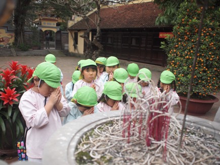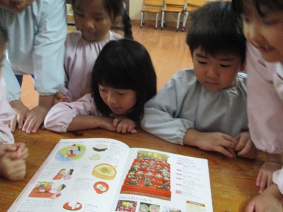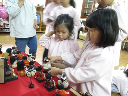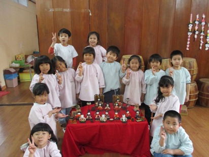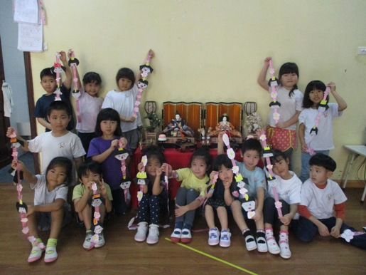 ピンクや赤を使った製作が多く見られるようになって、 春が近くにやってきているんだな、、と、 感じることが多くなってきました。 幼稚園でもお雛様を飾り、春の訪れをみんなで待っています。 さくら組(年長)も、お雛様を作りました。 とっ!!その前に、 みんなで、お雛様を飾りました。 これは大切なもので、壊れやすいものなので大事に扱うこと! と、伝えると、一人ひとりが丁寧に飾っていきました。 図鑑を見ながら、 「こっちにお内裏様で、こっちがお雛様だよー」 と言って、よく見ていました。 「うしろのキラキラかわいいー!」 「これは、名前なに?」 「びょ、、う、、ぶ、、。びょうぶ!!だってー」 と言って、子ども達が興味を持って、自分たちで調べて、 いろんなことを知っていきました。 「わぁー!!みんな白い顔してるー!!」 と、言うお友達もいました。 歌で聞いたり、見たりしていたのですが、こうやってじっくりと 感じたことはなかったようで、いい発見になりました。 みんなで飾ったお雛様の前で、 『かわいいおかおではい!ちーず*』 さて! 子ども達も!かわいいお雛様製作スタートです◎ さくら組は、折り紙でお雛様とお内裏様を作りました。 一つひとつ丁寧に作り上げていく様子が見られました。 お友達に教えてもらいながら作っていく姿もあり、 みんなで作る楽しさは、集団ならではですね! 同じ折り紙でも、 ちょっと折り方の向きが違えば、違ってくるので、 一人一人のかわいい、表情の違った作品になっています◎ 桃の花は、クレヨンでぐるぐると描いて、様々な形の桃の花が出来上がりました。 作ったものを、 リボンにのりで貼り、さくら組のお雛様製作が完成です◎ とってもかわいい作品が出来上がり、 見ているだけでも、わくわくしたり、たのしい気持ちになることができますね^0^ 日本を離れた子ども達にとっては、日本の文化に触れることが少ないのですが こうやって、お友だちと一緒に見たり、感じたりすることで、 日本の大切さを実感することができたと思います。 これからも日本の良さ、ハノイの良さを実感できるような 関わりしていきたいです。 (#082) ベトナム・ハノイの日系幼稚園 さくらHoaAnhDao幼稚園ホーページ |