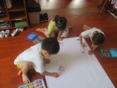 年中、年長の子ども達!! 2つのグループに分かれて、 ダイナミックに活動に取り組みました◎ 「なにかこうかなー」と、考えている表情も、にこにこで、 わくわくいっぱいの気持ちが溢れていました!! お友だちが描いたとなりで、 「わたしも、ペンギンかこう!」 「ペンギンのごはんも描いたら?」と、イメージを友達と共有しながら、 世界がどんどんと広がっていきました。 描き方や、描くものもなど個性あふれていて、 さすが子どもたちの作り出す作品!!と、思えるものが出来上がりました! これから、どんどん熱くなっていくハノイ☀ いろんな活動を通して大きくなっていく子どもたちの姿、 たのしみですね(^^♪ ※インスタグラムでも、子どもたちの様子がわかります。ぜひ、ご覧ください! (#082) ベトナム・ハノイの日系幼稚園 さくらHoaAnhDao幼稚園ホームページ |