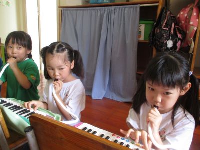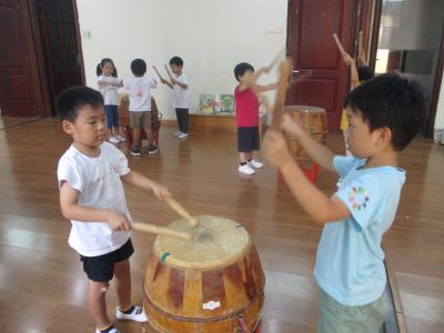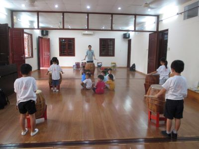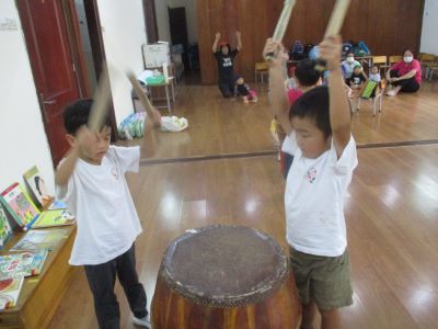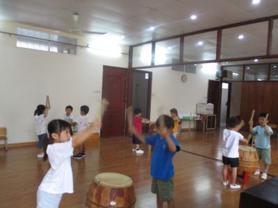 <鍵盤ハーモニカ> 「鍵盤ハーモニカもってきたよー」と、週明けになると、 喜んで教えてくれたり、 「家にやってみたよー!できたー!」と、言って報告してくれる子どもたちです☆ まずは、 鍵盤の開け方、片づけ方からお話をしていき、 それから、ピアノと鍵盤ハーモニカの違いなどを知り、 さっそく吹いてみました。 思いっきり息を吹かないと音が出ないことを知り、 コツをつかっむまでは、一生懸命に息を吹き込む姿です!! 「でたでた!」といって、少しずつ自分たちでコツをつかんでいくのを見守っていきたいです。 いまは、 ド、レ、ミと、ふけるようになってきています。 これから、いろんな歌を鍵盤ハーモニカで発表することを、 楽しみに取り組んでいきたいです◎ ホースを洗うことも、濡れないように気を付けてやっています!! おうちでも、自分で片づけてるかな?! <太鼓> 明日太鼓するよー!と伝えると、、 「えっ?!たいこするのー!!!やったー」と、目を丸くして喜んでいた子どもたち!! 太鼓は何でできているのか?! どうやって音を鳴らすのか?! どんな話も、興味津々で聞きたいこといっぱいで、真剣に話を聞いていました。 バチの持ち方を気を付けて挑戦です!! まだまだ、小さな音でも、 子どもたちからすると、すごい!!音が出た!! 「なんかドーンって腕が!!」と、言葉にならない感じで教えてくれました! お友だちと一緒に、気持ちを合わせることの大切さも伝えながら、 腕を伸ばし、力強く叩くと大きな音が出ること! 初めから、気を付けること大事なことを忘れないで、 みんなで楽しく取り組んでいきたいです!! ※インスタグラムでも、子どもたちの様子がわかります。ぜひ、ご覧ください! (#082) ベトナム・ハノイの日系幼稚園 さくらHoaAnhDao幼稚園ホームページ |