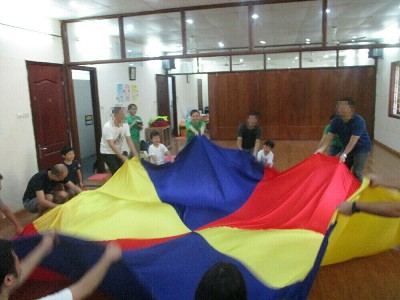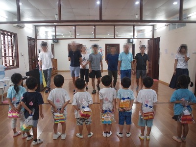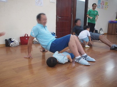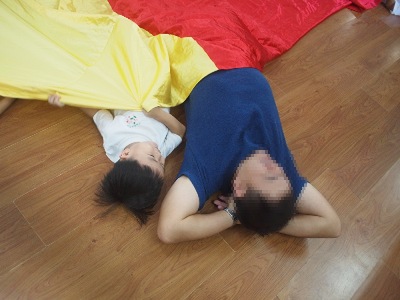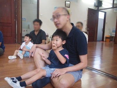 とても暑い日でしたが、すずらん組さんは大好きなお父さん達と一緒ということで、 みんな笑顔で登園してきてくれました。 (日本でお仕事のお父さんの分まで頑張ります!と、お母様も参加してくださいました さぁ、手遊びを始めましょう♪ 『かみなりどんがやってきた』は、普段から子ども達と楽しんでいる手遊びです。 この日は、子ども達が考えた2人バージョンにも挑戦 かみなりどんに取られないように、おへそやおしり…おでこをお父さん達と一緒に隠します。 ギューッと、密着してお父様方の緊張された顔が笑顔に変わります。 朝のうた『おはよう』をきいてもらい、次は体を使った親子体操です! かけ声と同時に、親子で力を合わせ、 ブランコ、人間鉄棒、ロケット、ジャンプトンネル、グーパージャンケンに変身します! 子ども達はダイナミックで力強い遊び方に大興奮でした。 ホール全体が笑顔になったところで、パラバルーンの登場です 最初はバルーンを大きな布団にして、少し休憩 そして子ども達が大好きな『パプリカ』の曲に合わせて、ぶっつけ本番 波、シーソーフワフワロケット、メリーゴーランドなど、大技がバッチリと成功しました いつもできなかったシーソーができて、みんなで大喜び しっかりと体を動かした後は、 お父さん達と向かい合い『はしれジャイアント』の歌のプレゼント。 パパチョップ、パパキック、では、親子で笑い会う姿もあり、ほほえましかったです。 そして、子ども達が少しずつ作り上げてきたプレゼントを渡す時間。 いつもにぎやかな子ども達が静かになり、プレゼントを持ち、渡す時間を待ちます。 少し照れながら、一生懸命「ありがとう」の気持ちを伝えることができました。 とても素敵な時間になりました ご参加して下さったお父様、お母様、ありがとうございました こけし ベトナム・ハノイの日系幼稚園 さくらHoaAnhDao幼稚園ホームページ |