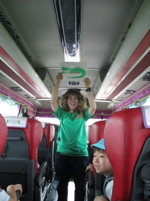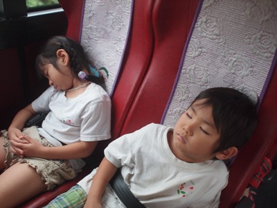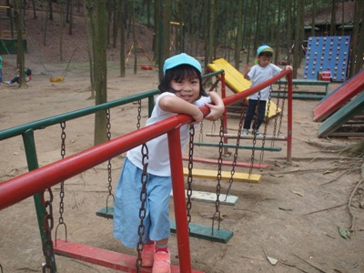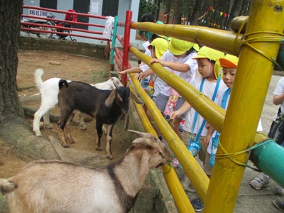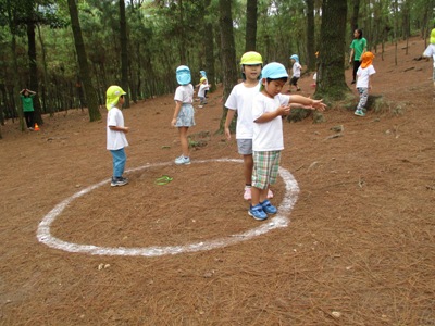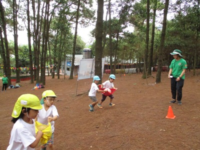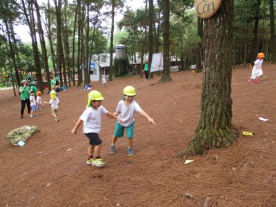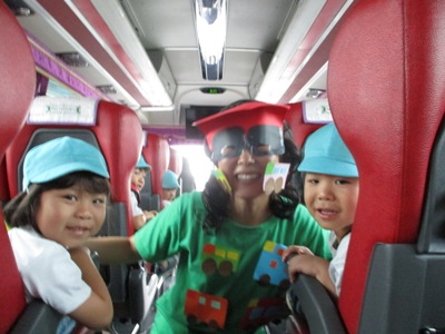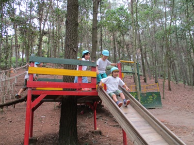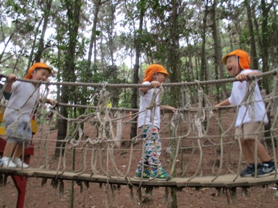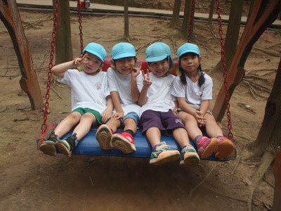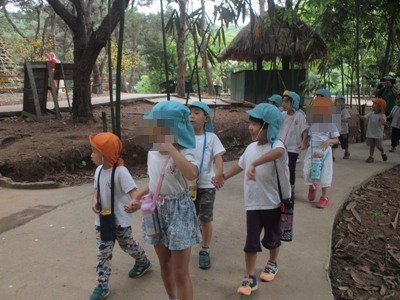 シルエットゲームやジェスチャーゲーム、穴空きクイズをして大盛り上がりでした♫ あっという間に40分が過ぎ、ついに到着! まずはおトイレを済ませて広場に行きました。 広場では、 ボール運びゲーム、ダブルでドロケイ、宝探しの3つをしました(^^♪ ボール運びはさくら組とすずらん組が二人一組のペアになって色チームで競争です! 落とさないように〜 がんばれがんばれー!! 団結力が深まったようです♫ 次はダブルでー、ドロケイーーー!! 少し傾斜のある広場では走るのが大変だったけれどみんな一生懸命走って逃げて追いかけてがんばっていました ![]() 転んでしまうこともあったけど傾斜でも走れるようになって自信がついたようです♫ 宝探しではチームのみんなで作戦会議。。 どうするどうする? 「みんなで同じところにいったら一つしか取れないよ」 「じゃあバラバラに探せばいいんじゃない?」 などと作戦を立てて。。 いざ出陣ー! いっぱい集められて笑顔が溢れるみんなでしたー(^^) そして2チームに分かれて園内を散策しました。 公園にはダチョウや魚、ヤギなどがいました! ダチョウさんって大きいんだね~ ヤギさんどうぞいっぱい食べてね~! お魚さんこっちおいでー! 捕まえたよーーー!! 途中に細い橋をそろりそろり。。 上手にわたることができました! こんなところにジャックフルーツ! 大きいね~ 普段あまり見たり触れ合ったりできないものに出会うことができて 笑顔が溢れる散策となりました♪ しっかり遊んだ後は、、、お待ちかねの いつもとは違う特別なおやつを持ってきていたので、子ども達同士で、 「これにしたんだー!」「あっ!たべたことあるー」と、 お菓子トークでも盛り上がり、 広い外で食べる愛情たっぷりのお弁当は、特別においしかったようです ご準備ありがとうございました. お腹もいっぱいになって、さいごにもうひと遊び 大型遊具でめいっぱいあそびこみました 丸太の橋を渡ると、滑り台があったり、 お友だちと一緒に乗れるブランコも大発見◎ このブランコが一番の思い出になったお友達もいました! なんでも、『友達といっしょ さくら組で大きなシーソーにも乗りました★ なかなか、こうやって、みんなが乗ることができないので、 大騒ぎで、今にも子ども達の笑い声が聞こえてきそうですよね ちょっと怖かったぐらぐら橋も、 ゆっくり歩き、バランスを取りながら最後までわたることができて、 「できたー!!」と、自信になった笑顔を見せてくれました。 楽しい時間はあっという間、、、 思いで詰まった『Bản Rõmエコツーリズム』ともお別れです。。 次は、ご家族でぜひ行ってみてください** 帰りのバスでは、一日遊んだ疲れもありつつ、寝てしまう姿もありました。 いっぱい遊んでたのしかったね。どんな夢を見てるのかな 天気にも恵まれて、思いっきり遠足をたのしんだ子ども達。 今回の遠足でまたひとつ、素敵な思い出ができました これからも、友達といっしょにもっと (potato ベトナム・ハノイの日系幼稚園 さくらHoaAnhDao幼稚園ホーページ |