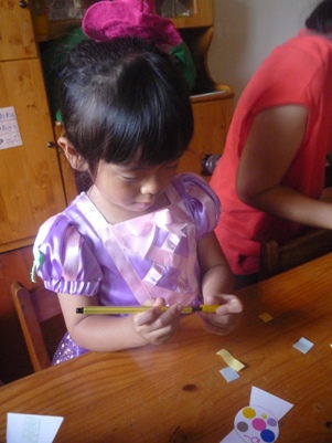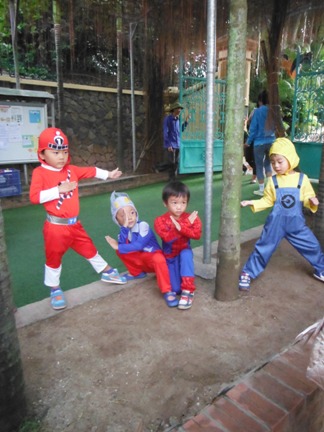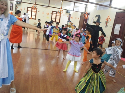 今日はみんな、なりたいものに仮装をして登園です。 みんなでポーズ!かっこいいね! 仲良しのお友だちと一緒☆ ホールへ集まると、自分たちで作ったハロウィーンの作品が、装飾に使われています。 こうやって作ったんだよーとみんなの前で教えてくれました。 それから、ペープサートによる由来のお話。 ハロウィーンはケルトの人たちにとっての大晦日。この日には、ご先祖の魂が帰ってくると同時に、悪いオバケもやってきてしまいます。オバケにいたずらされないように、仮装したのが始まり。かぼちゃのランタンはオバケじゃないんだよ、オバケの苦手な火で撃退するためのかぼちゃランタンなんだよーとお話しました。子どもたち、ちゃんと分かってくれたかな? その後、異年齢のグループに分かれて、製作、ダンス、ゲーム、お話のへやの各コーナーを周ります。 製作コーナーでは、キャンディのバンド作り。お母さんたちが用意してくださったキャンディに色をぬったりシールを貼ったり。 真剣な表情で取り組んでいますね。 ゲームコーナーでは、的あてやボーリング。 ダンスコーナーでは、運動会や日本祭りでみんなで踊ったダンスを踊ります。 絵本のおへやでは、お母さんたちが読み聞かせをして下さいました。 それぞれのコーナーをクリアしたら、スタンプをもらえます。 そして最後にみんなでファッションショー! 「何になりましたか?」の質問に、うれしそうに,堂々とこたえ、みんなの前で今日のかわいらしい姿を見せてくれた子どもたちでした。 ベトナム・ハノイの日系幼稚園 さくらHoaAnhDao幼稚園ホームページ |