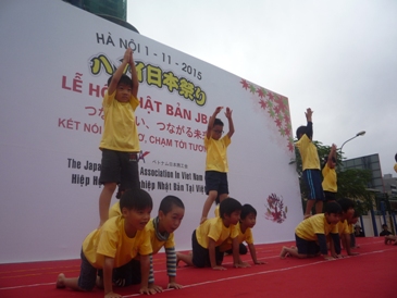 集まる(集まったかのように感じる!) ベトナム日本商工会主催の日本祭りがありました。 会場には、子供たちの喜ぶゲームコーナーや 焼きそばやとうもろこしなどの屋台が立ち並び、 なんとも活気のある雰囲気。 毎年、この日本祭りでは、さくらHoaAnhDao幼稚園も ステージ参加をさせて頂いています。 今年のステージでは、年長さんの力強い組体操の姿と なのはな組・すずらん組・さくら組みんなで元気いっぱい踊る ダンスを披露しました! さくらっ子のお友達は本当に踊ることが大好き! 今回のダンス曲「僕らはちいさな海賊だ」も あっという間にマスター踊れるようになってしまいました。 3歳児クラスのなのはな組さんも お兄さんお姉さんの楽しく踊る姿が素敵な見本となり、 自然と体が動き踊れるようになります。 異年齢の活動のすばらしさですね。 年長 組体操 いつもより高い舞台と、たくさんの観客に ドキドキしながらも、精一杯がんばります! 三人技! スカイツリー!! ダンスが始まり、なのはな組、すずらん組も登場です! 音楽が始まると、この笑顔! 会場では、いちご組もも組のお友達も応援してくれていますよー。 すずらん組のガッツポーズで踊る姿もきまっています! 今回は、ダンスの合間にもさくら組の見せ場!組み体操を 盛り込んでみました! かっこいいー!! 最後は、みんなでステージの上で「やーーー!!!」 子供たちの元気な声が、ハノイの空に響きました。 開園10周年の節目の年。 今後も、子供たちの健やかな成長を、保護者の皆様と一緒に 見守っていきたいと思います。 ベトナム・ハノイの日系幼稚園 さくらHoaAnhDao幼稚園ホームページ |
