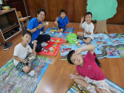 子ども達はワクワクドキドキして幼稚園に来てくれました☺ 速報として1日目の子どもたちをお伝えします♪ 残念ながら登園と同時に雨が降り始めてしまったため、 ゲーム~スタンプラリー~ と夏祭りは室内で行うことになりましたが、 わくわくさくらぐみのスローガン【みんなで応援!みんなで楽しむ!】の通り、 思い切り楽しんでいた子ども達でした♪ ◎ゲーム~スタンプラリー~ 同じチームのお友だちと力を合わせてスタンプ集めることが出来ました!!! ◎夏祭り 射的やスーパーヨーヨーすくいなどなど・・・楽しいお店がたくさん!!! お化け屋敷も全員がんばって入りました! ◎夕食 ♪お弁当を作って、さくら組さんと職員みんなで、ピクニック気分で食べました♪ BGMには小鳥のさえずりやセミの鳴き声が。 途中、ゴリラの雄たけび!?にはみんなびっくりでしたが、 お腹一杯、自分だけのお弁当を美味しく頂きました。 ◎キャンプファイヤー 皆の願いが叶いピタリと雨がやみ、園庭でキャンプファイヤーをすることができました! 花火もたのしかったね♪ ◎お風呂 お風呂のあとにハイチーズ♬ 盛りだくさんの活動で少し時間が押してしまい、21:20の就寝となりましたが、 目いっぱい遊び疲れた子どもたちは、大あくびをしながらお布団に入りました☺ 現在は全員ぐっすり眠りについています・・・zzz 職員が交代で、朝まで子どもたちの側で見守っておりますので、どうぞご安心ください。 それではまた明日、お迎えの時間に幼稚園でお待ちしております☺ 子ども達のきらきら光る笑顔と、思い出話を聞けることを楽しみにしていてくださいね♪ (♪) ※インスタグラムでも、子どもたちの様子がわかります。ぜひ、ご覧ください! ベトナム・ハノイの日系幼稚園 さくらHoaAnhDao幼稚園ホームページ |