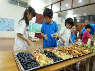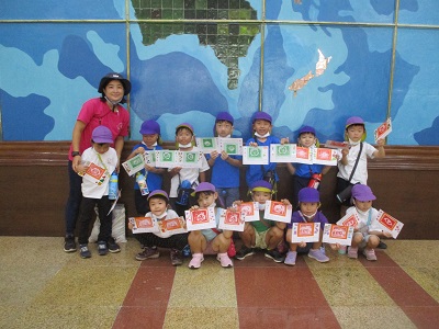 会話を楽しみながら、洋服に着替えて顔を洗います♪ ◎ラジオ体操 ラジオ体操係さんが前に立って、みんなで体操をしました! 昨日までの雨が嘘かのように青空が広がり、とても気持ちが良かったです☺ 最後に王冠のスタンプをもらうことができました! ◎朝食 みんなで手作りのサンドイッチを作って食べました。 いつも一緒に遊んでいるすずらん組から、 お花とメッセージボードのサプライズプレゼントをもらい、ホッコリ♬ 特製サンドイッチおいしくできるかな? この2日間は、給食・事務のスタッフにお掃除さんなど、職員全員が子どもたちと一緒に過ごします♪ 皆で食べるごはんは美味しいね(^^♪ ◎すいか割り すいか割り係さんに「1.2.3.4.5!」と数えてもらいながら、ぐるぐるまわります まずは先生が見本を見せてくれましたが、フラフラフラ~立つのがやっとです・・ 子ども達も挑戦!!! 見事にすいかに当たって集まってきた子ども達☺ 最後はみんなで美味しく食べました! ◎絵日記 わくわくさくらぐみの最後は、”わくわくさくらぐみで楽しかったこと”を絵日記にしました。 お化け屋敷が怖かったことや、キャンプファイヤーのことなど、、、2日間の思い出を一生懸命文字と絵で書いていた子どもたちでした! この2日間、お友だちや先生・スタッフみんなで目いっぱい特別な時間を楽しむことが出来ました♪ この特別な2日間をいつまでもいつまでも忘れないでね(^^♪ (♪) ※インスタグラムでも、子どもたちの様子がわかります。ぜひ、ご覧ください! ベトナム・ハノイの日系幼稚園 さくらHoaAnhDao幼稚園ホームページ |